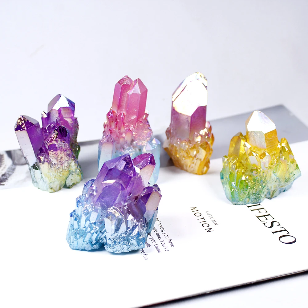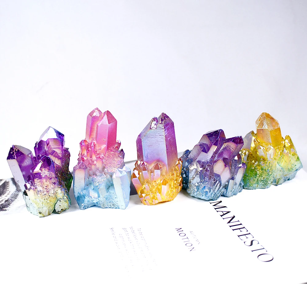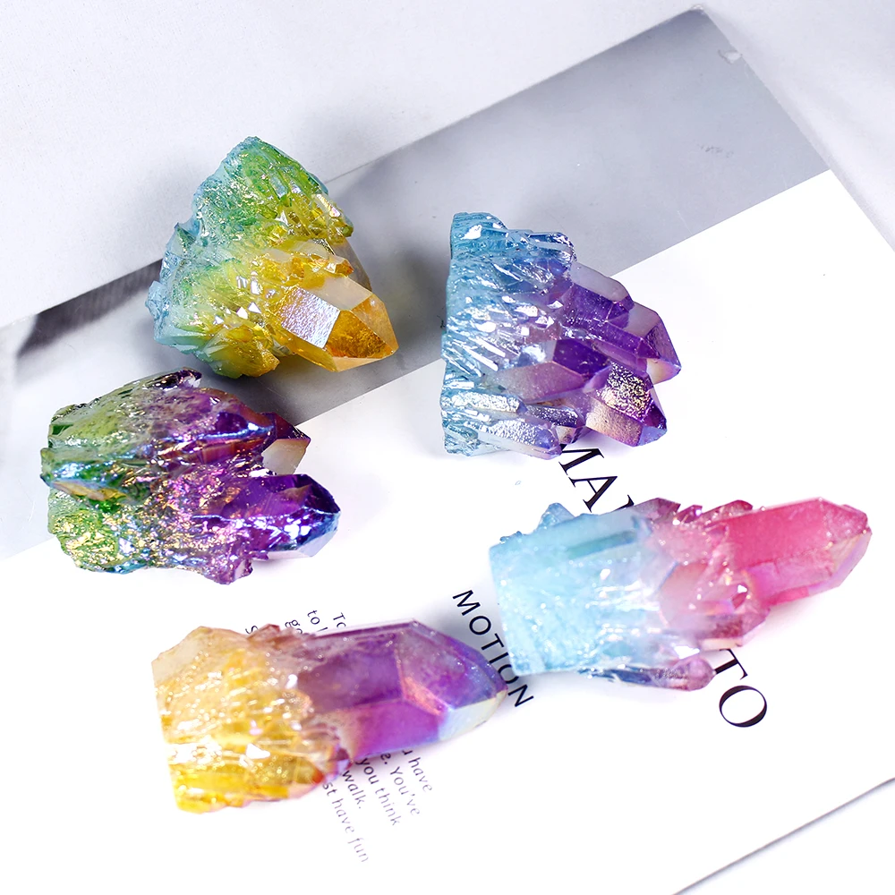 Природный Кристалл кварц цветовой кластер минеральный с лечебным действием, образцы Новый Многоцветный гальванический камень домашний камень декор