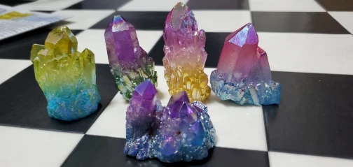 Они прекрасны. Немного разочарован, однако, потому что я взял 5, чтобы иметь максимум разных цветов, и у меня было три раза один и тот же цвет, что и два кристалла почти идентичны.