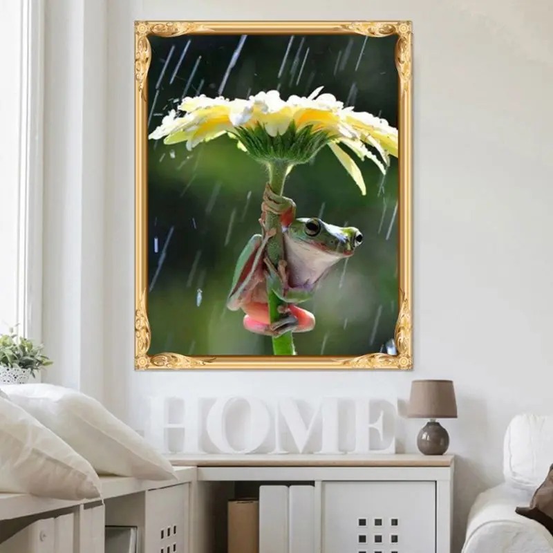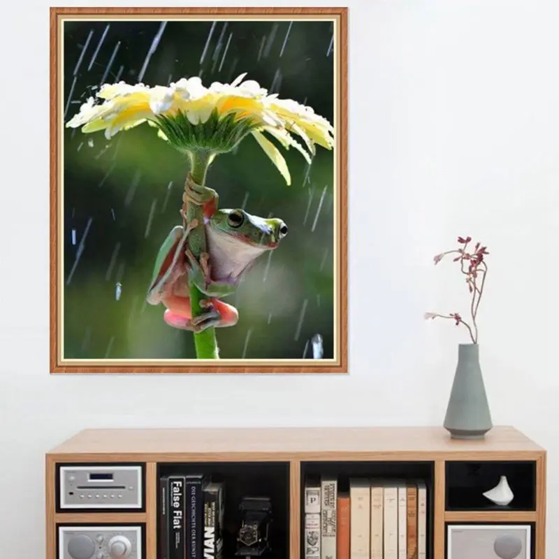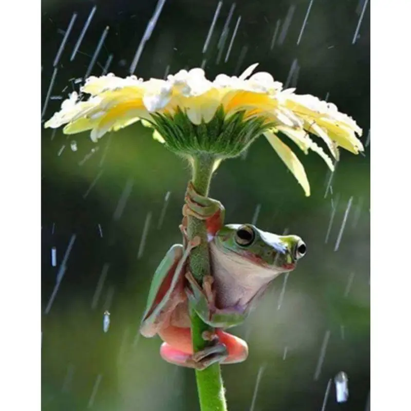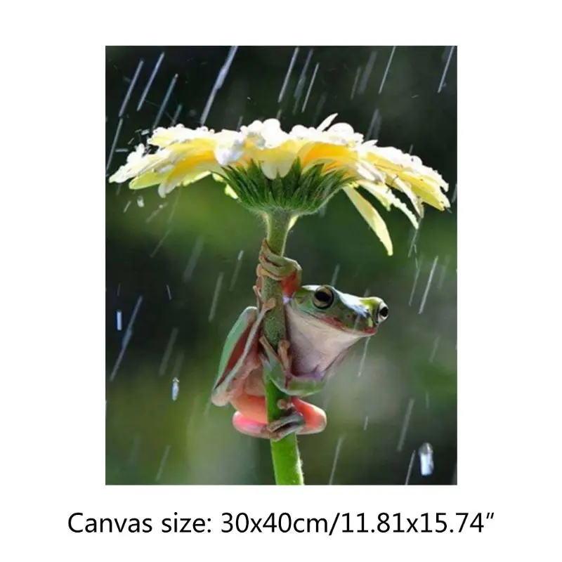 5D алмазная картина, 12x16in, покрытие лягушки, дождь, картина, вышивка крестиком, полная дрель, стразы, вышивка, фотографии