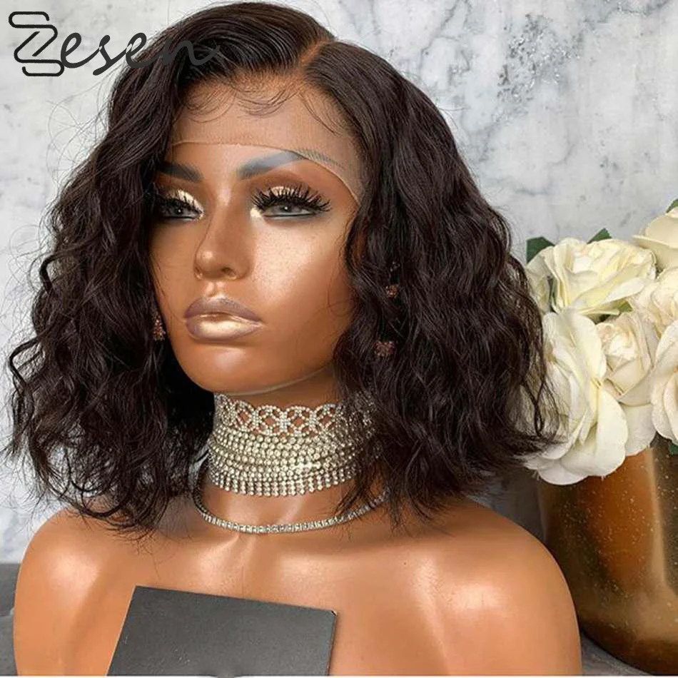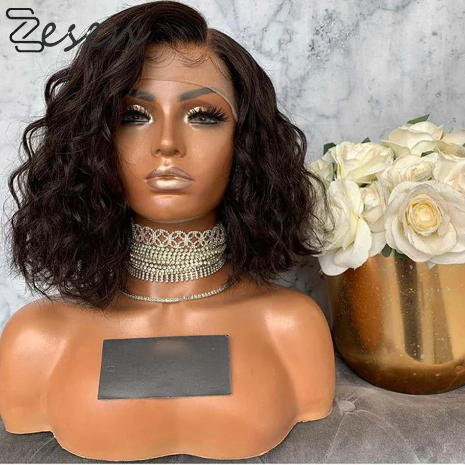 Синтетические 180% кружевные передние парики 13*4, вьющиеся черные короткие парики боб для женщин, волосы из термоволокна, реалистичный парик для повседневной носки с детскими волосами