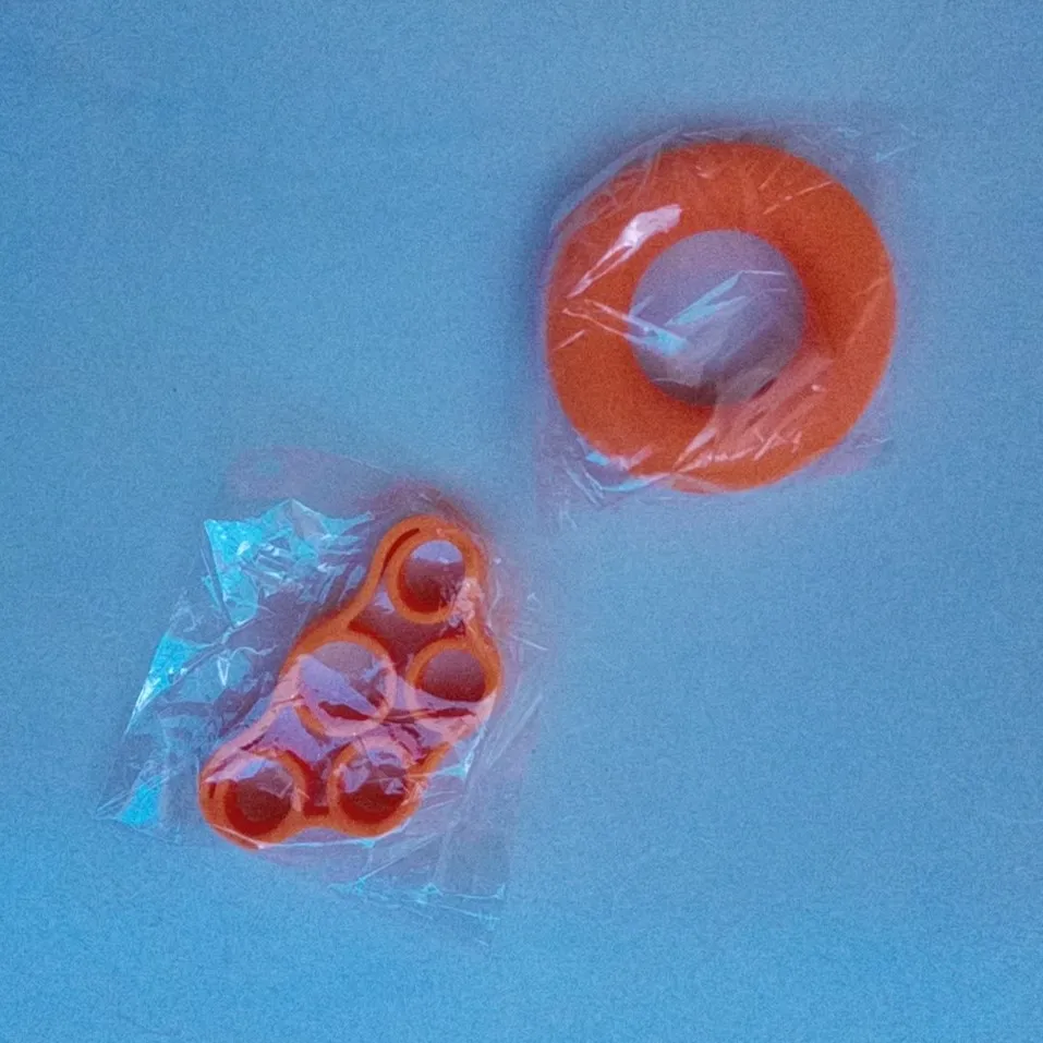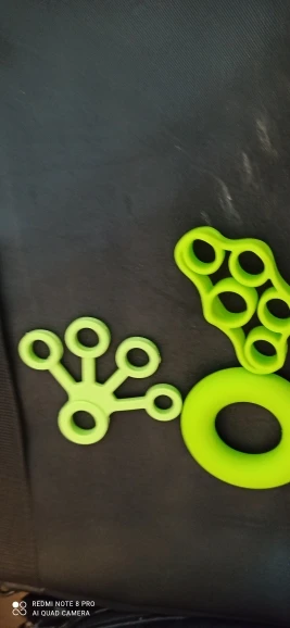 Заказал зелёный набор. Кольцо немного слабое, а остальное с трудом надевается на пальцы и упругое. Буду приспосабливаться.