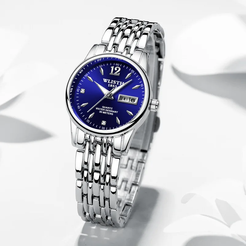 Женские Водонепроницаемые кварцевые часы WLISTH, из вольфрамовой стали, под розовое золото, с Китайско-английским календарем