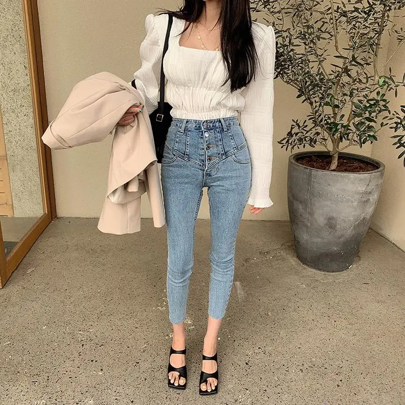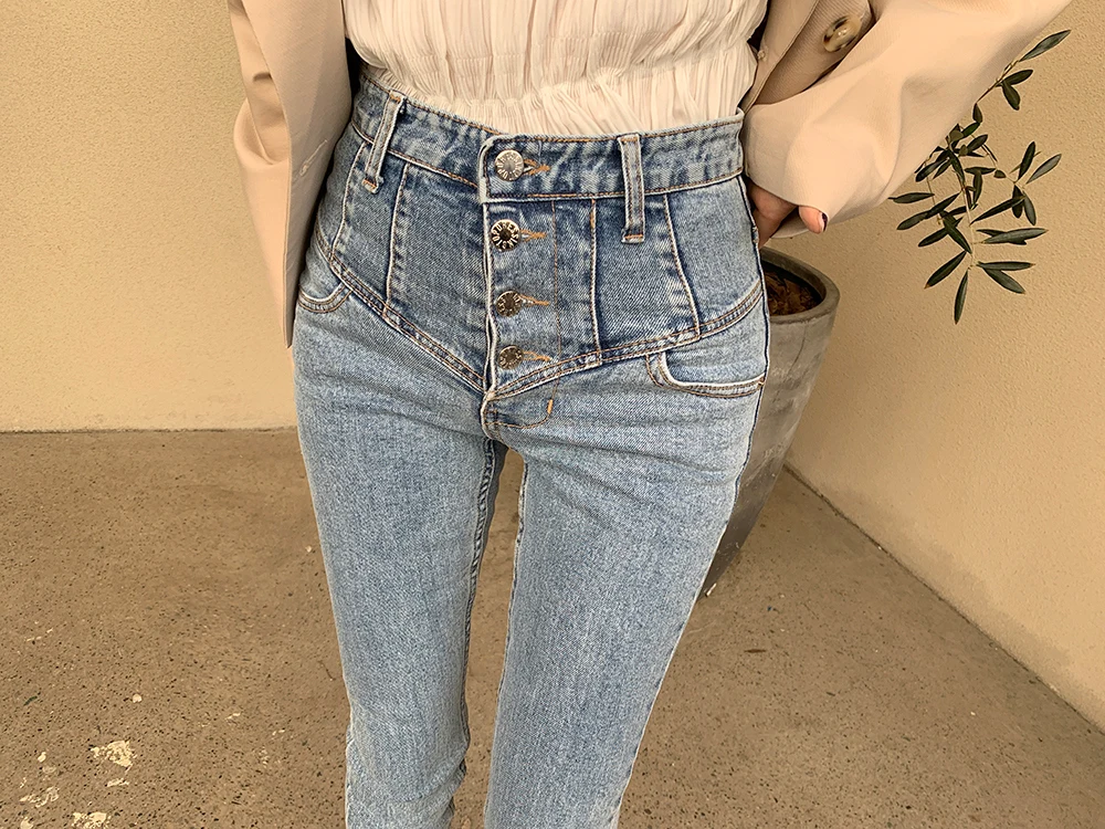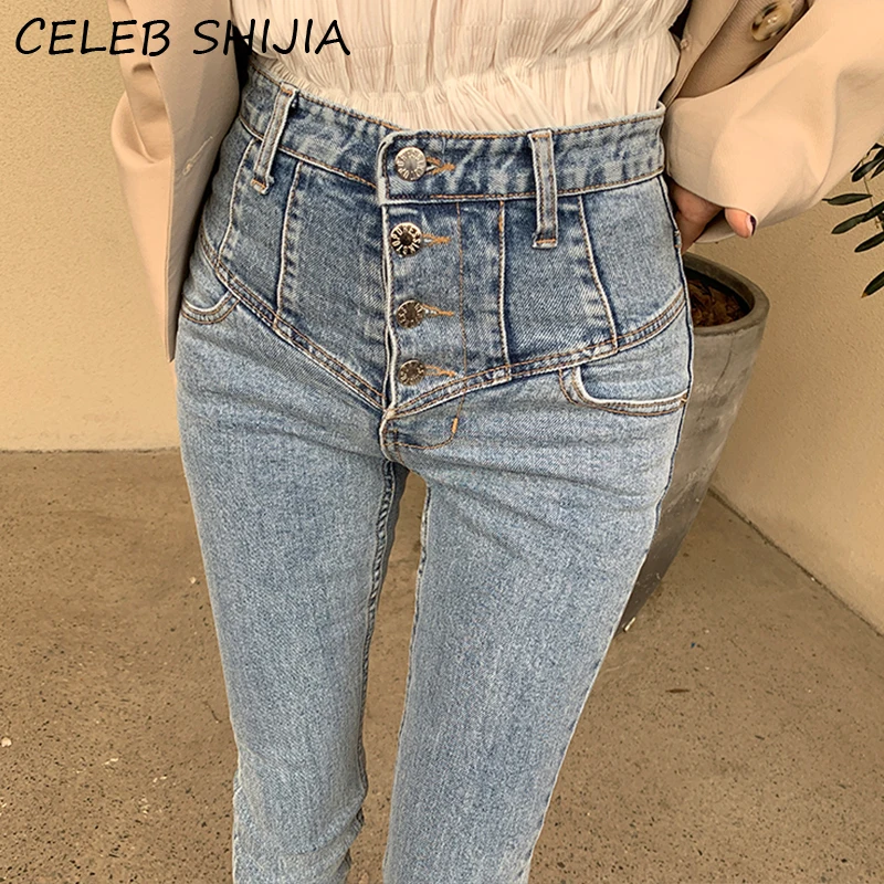 Женские облегающие джинсы SHIJIA, однобортные эластичные уличные брюки с завышенной талией, весенние джинсы 2021