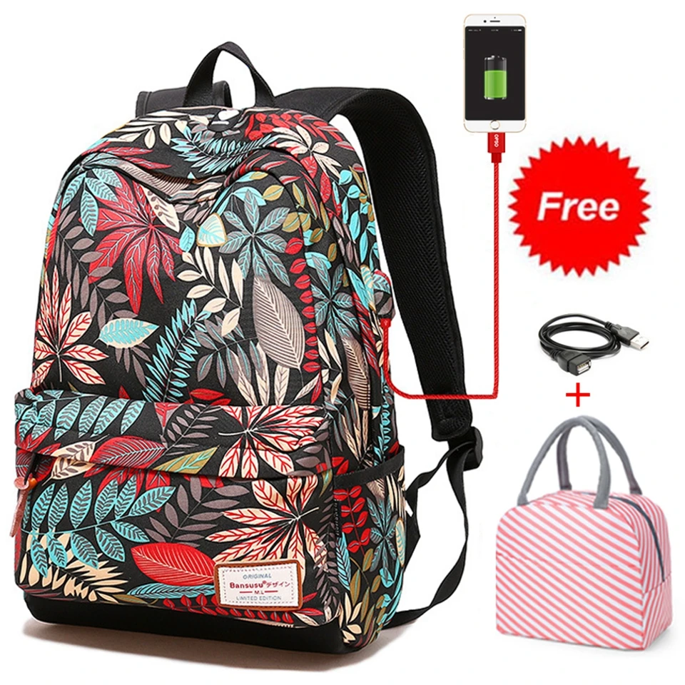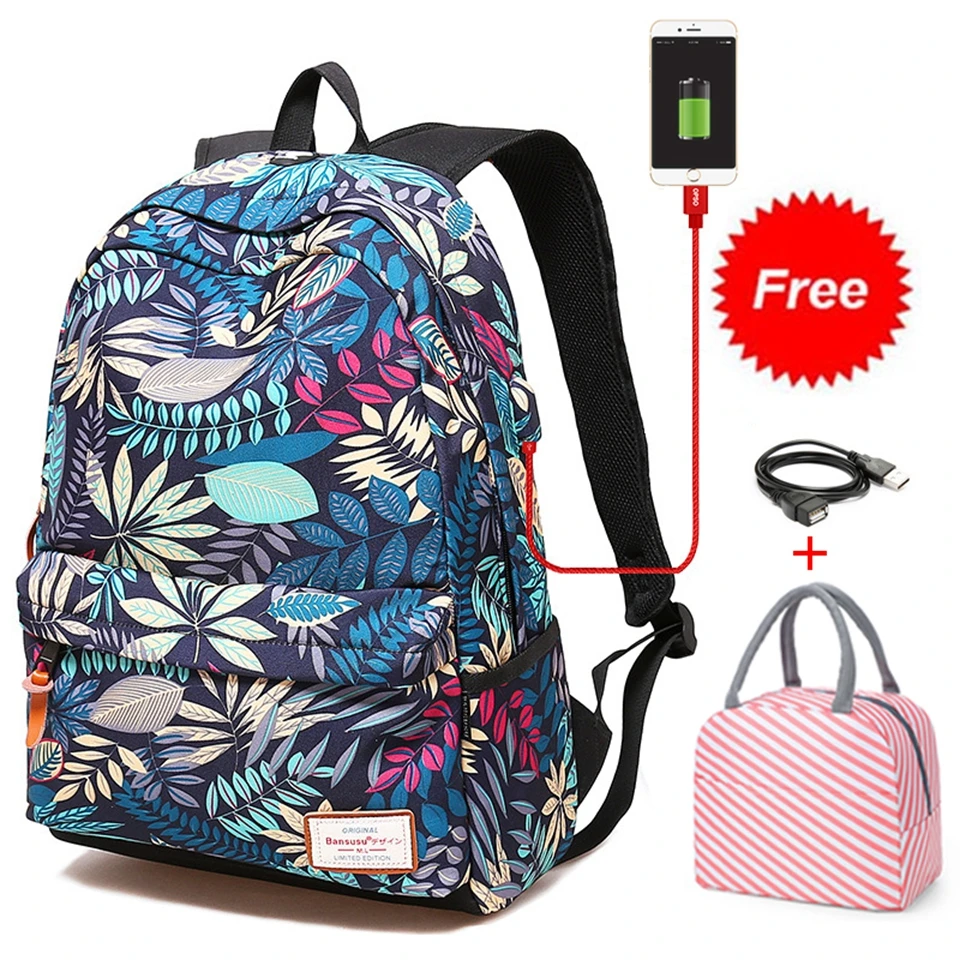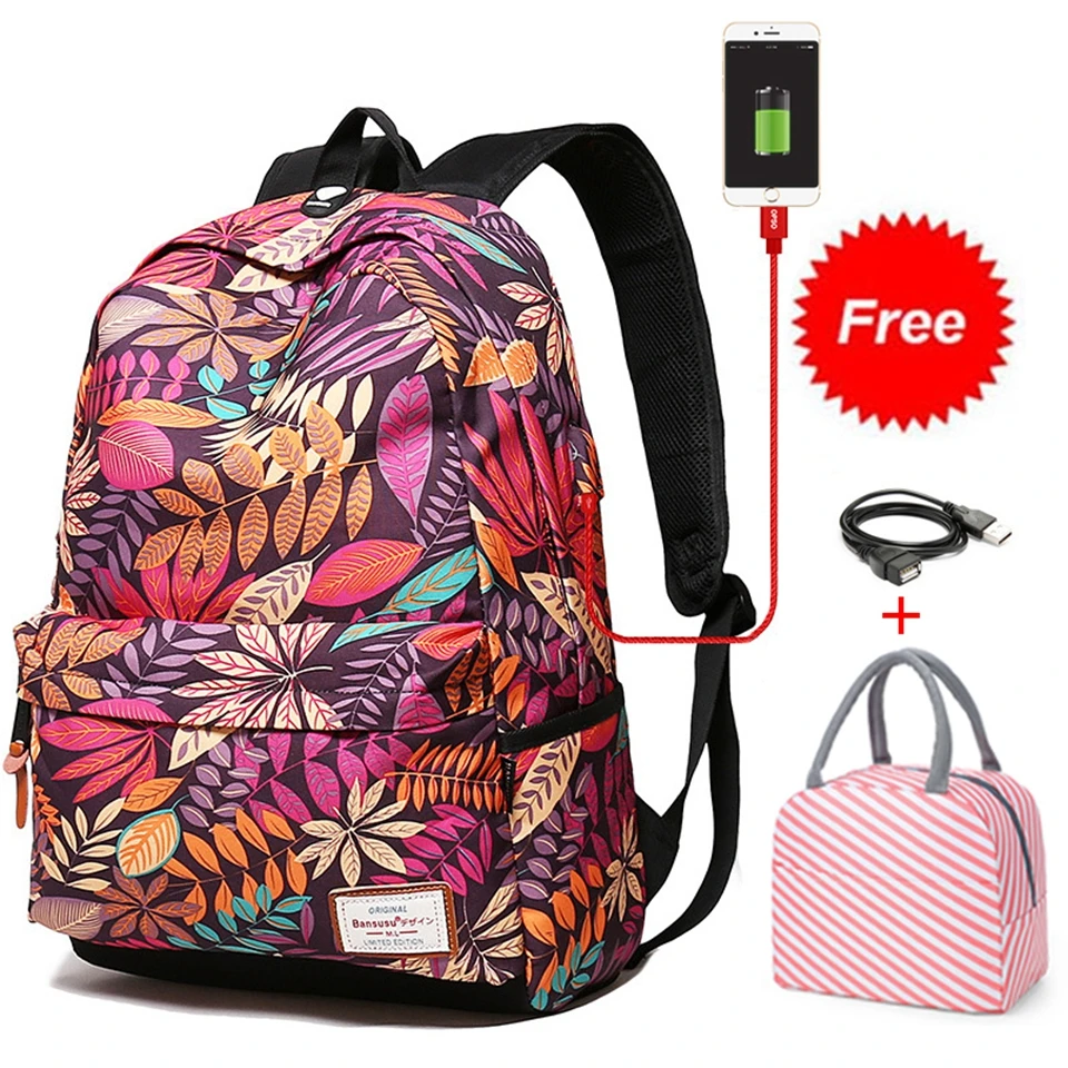 Рюкзак женский, для ноутбука, с USB-портом для зарядки, школьный, прочный, 2020