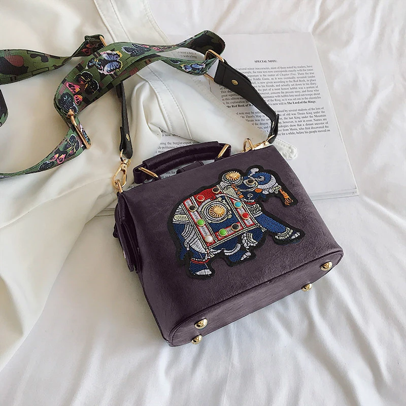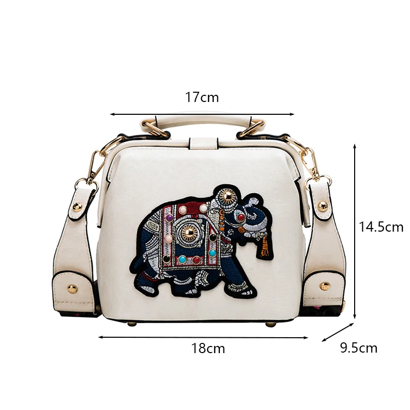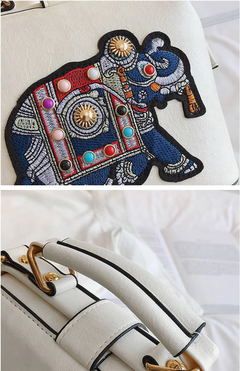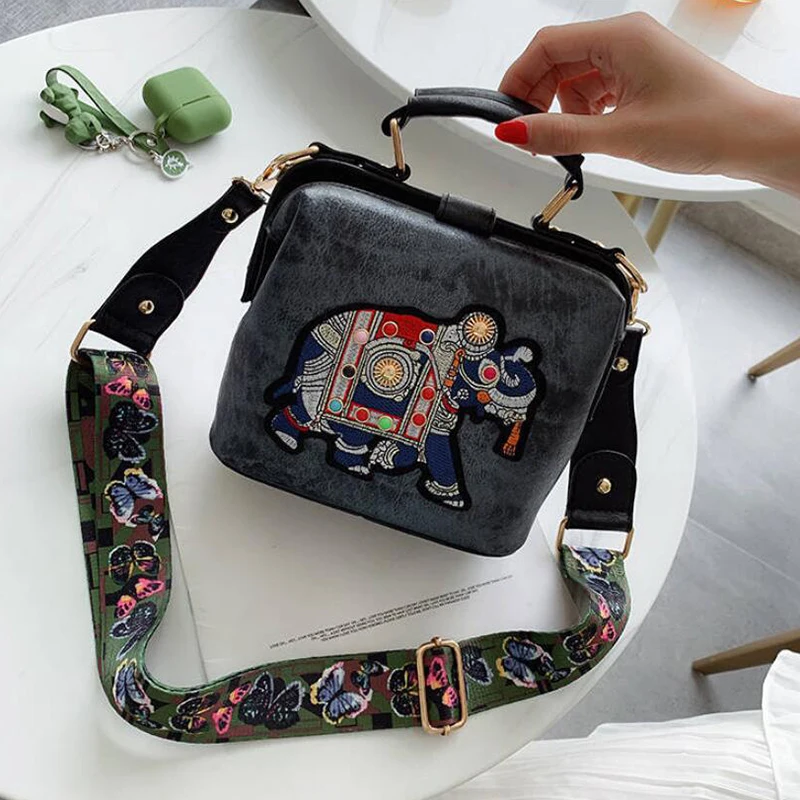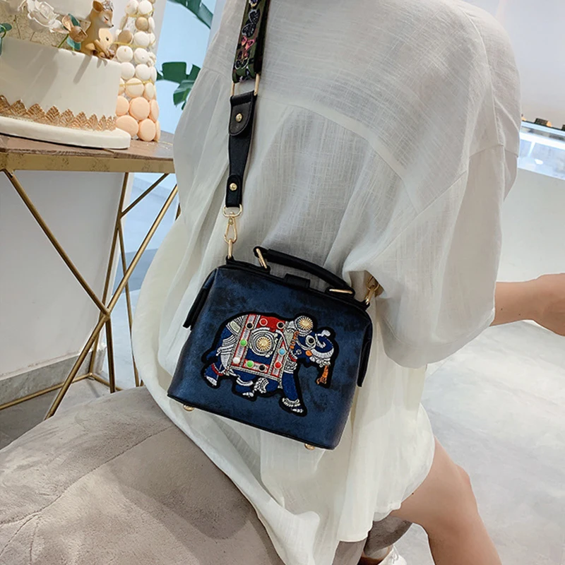 Сумка на плечо женская с вышивкой слона, саквояж кросс-боди из искусственной кожи в винтажном стиле, сумочка-мешок с широким ремешком, Дамский кошелек