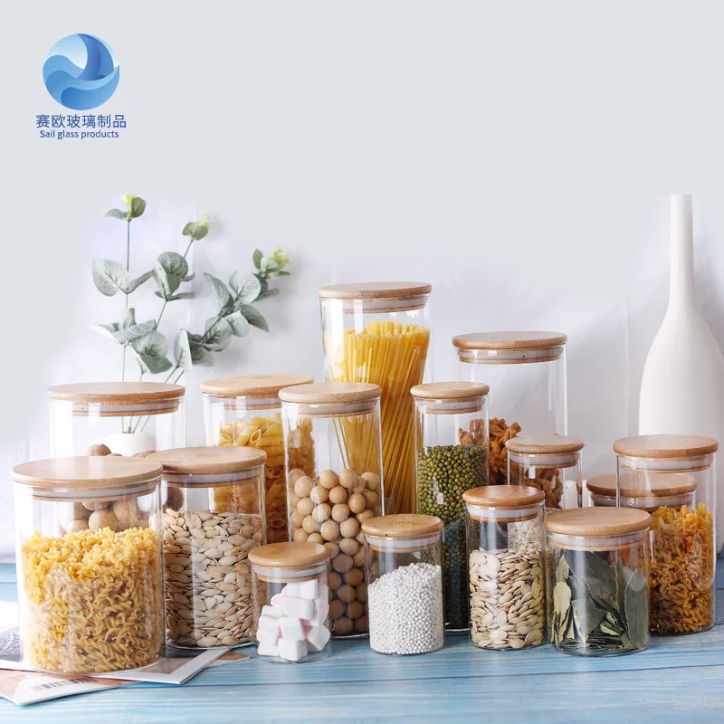 Банки из боросиликатного стекла с бамбуковой крышкой, банки для чая, прозрачные банки для хранения, банки для конфет