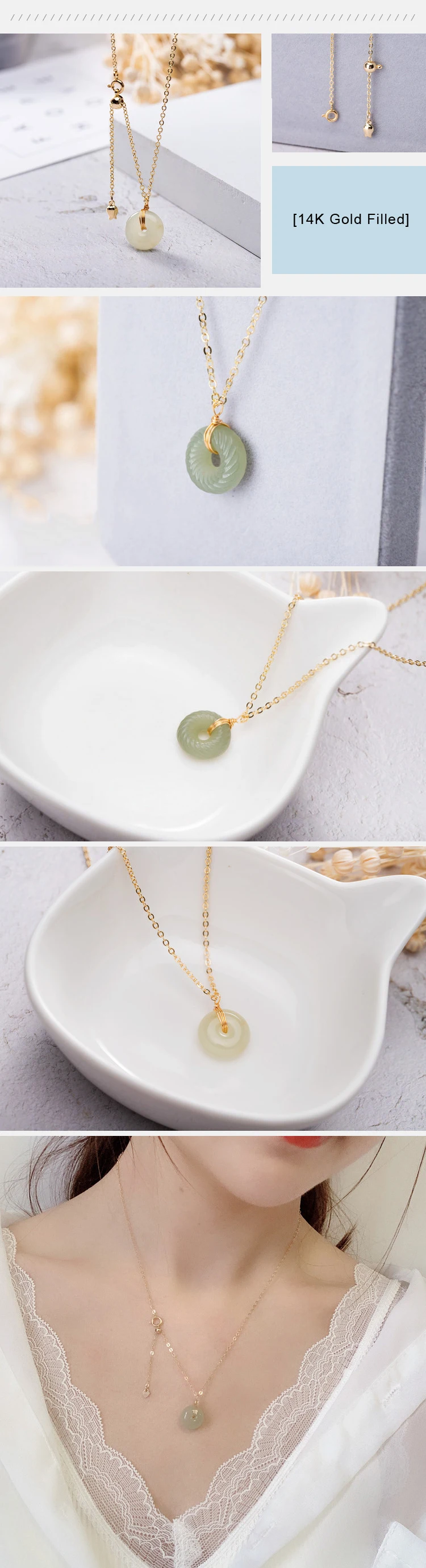 Натуральный камень подвеска с нефритом 14 к позолоченная цепь круглый диск лечебные камни рейки нефрит для женщин ювелирные изделия