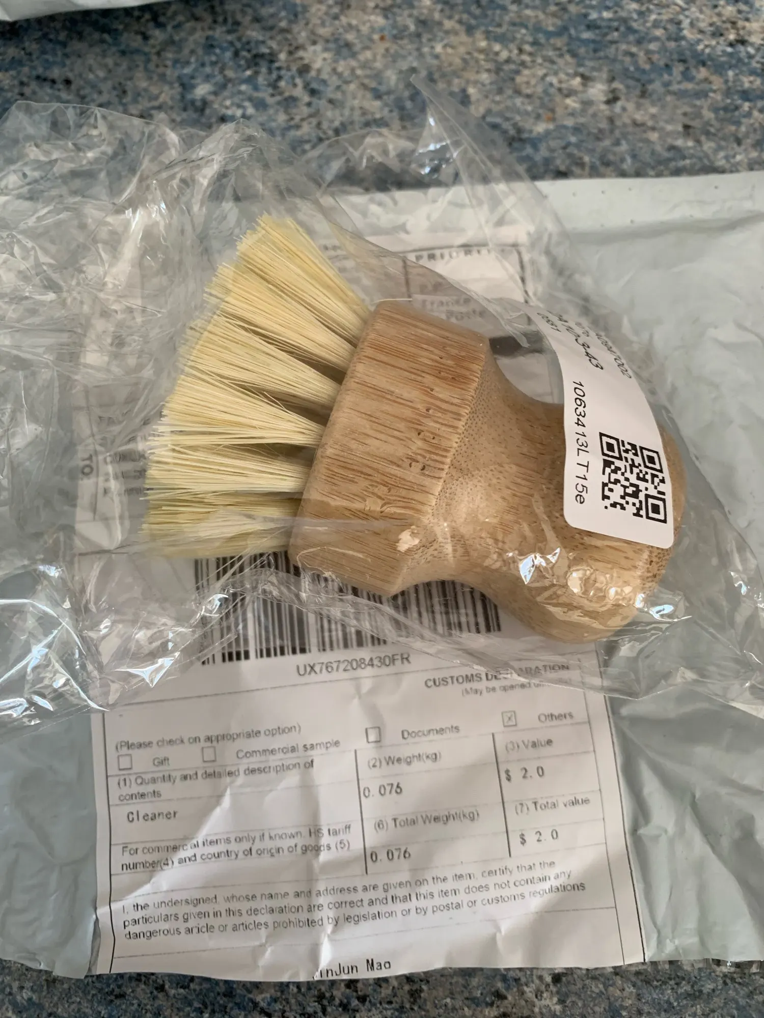 Быстрая доставка. Щетина твердая, как на зубной щётке, очень удобно мыть посуду. Щетинки длинные, поэтому можно достать в узких щелях. Хорошо тереть подгоревшую еду на сковороде.