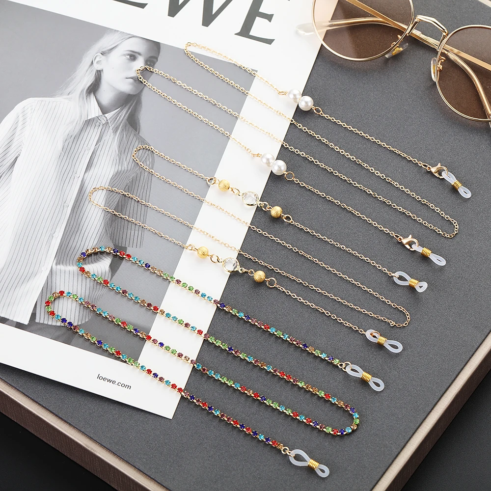 Цепочка для очков Женская, модный металлический шнурок с бисером для очков, держатель для очков