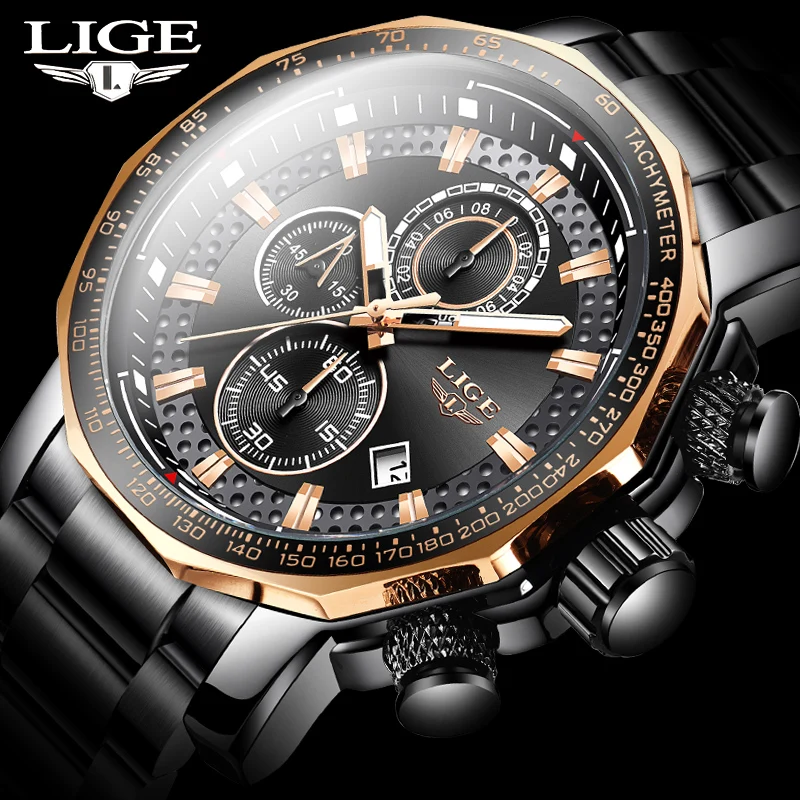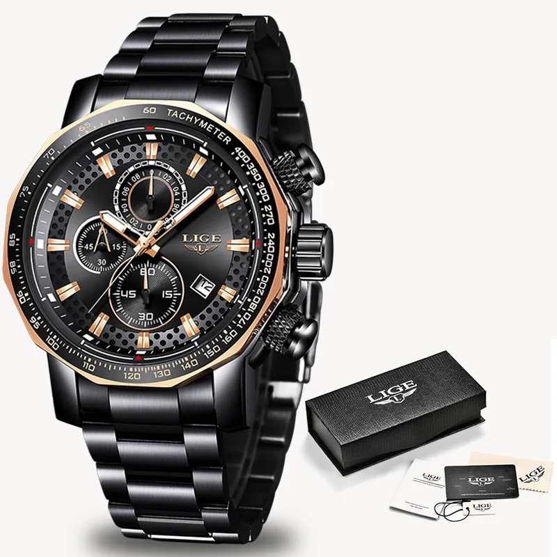 Часы наручные LIGE Мужские кварцевые с хронографом, брендовые Роско...