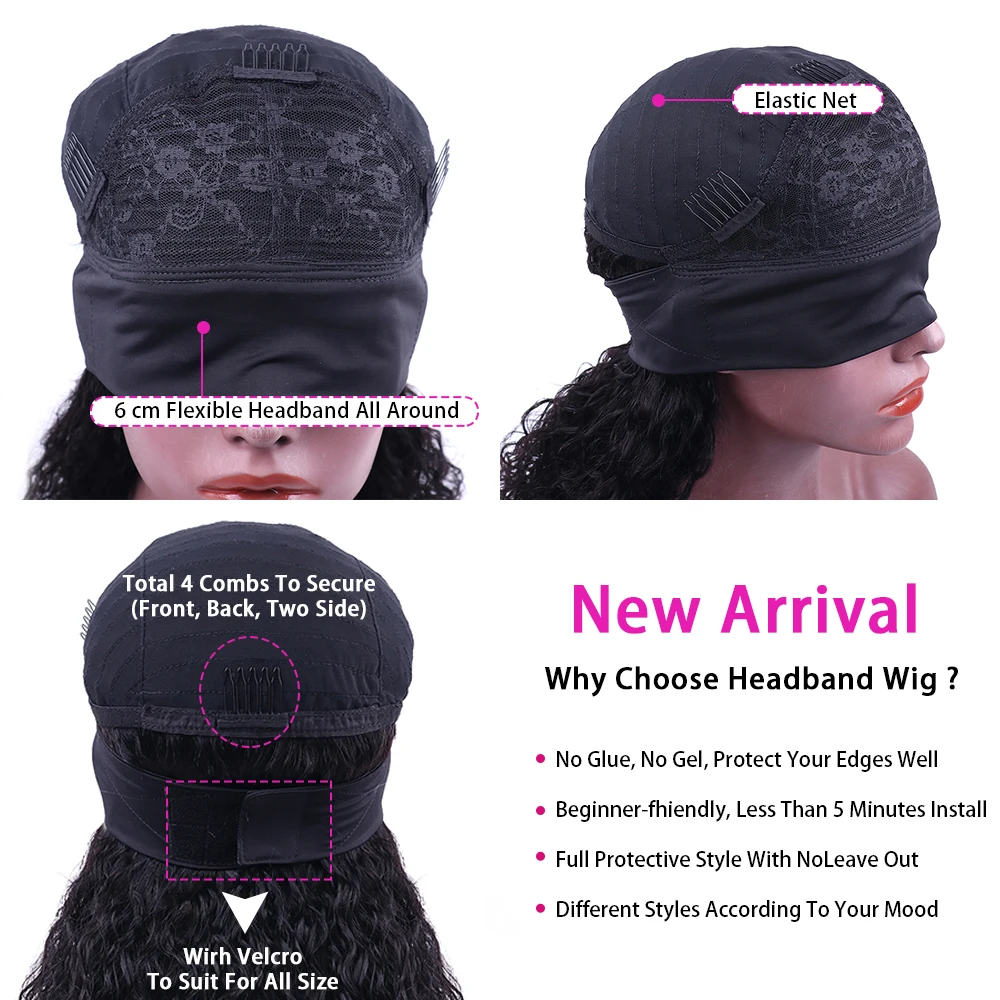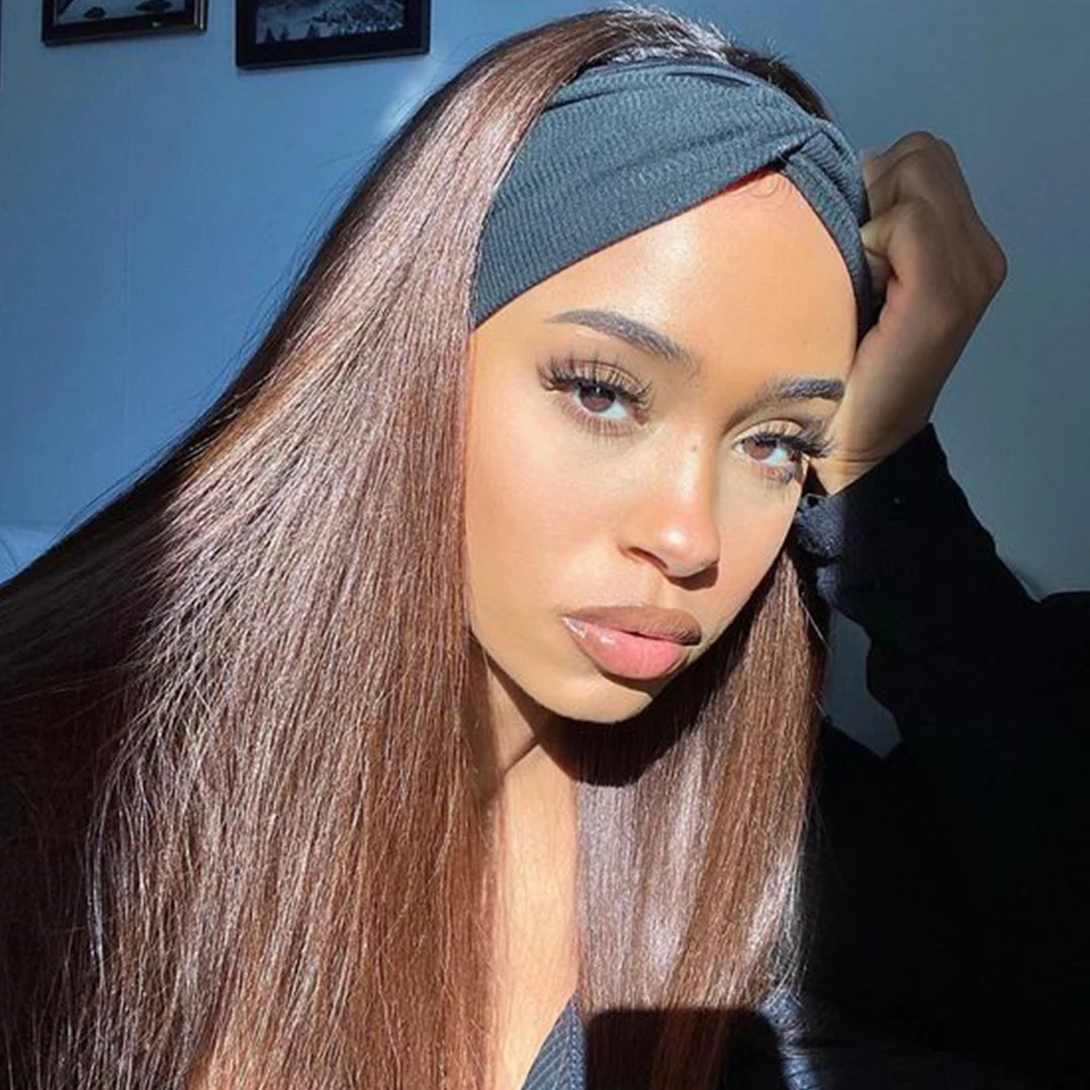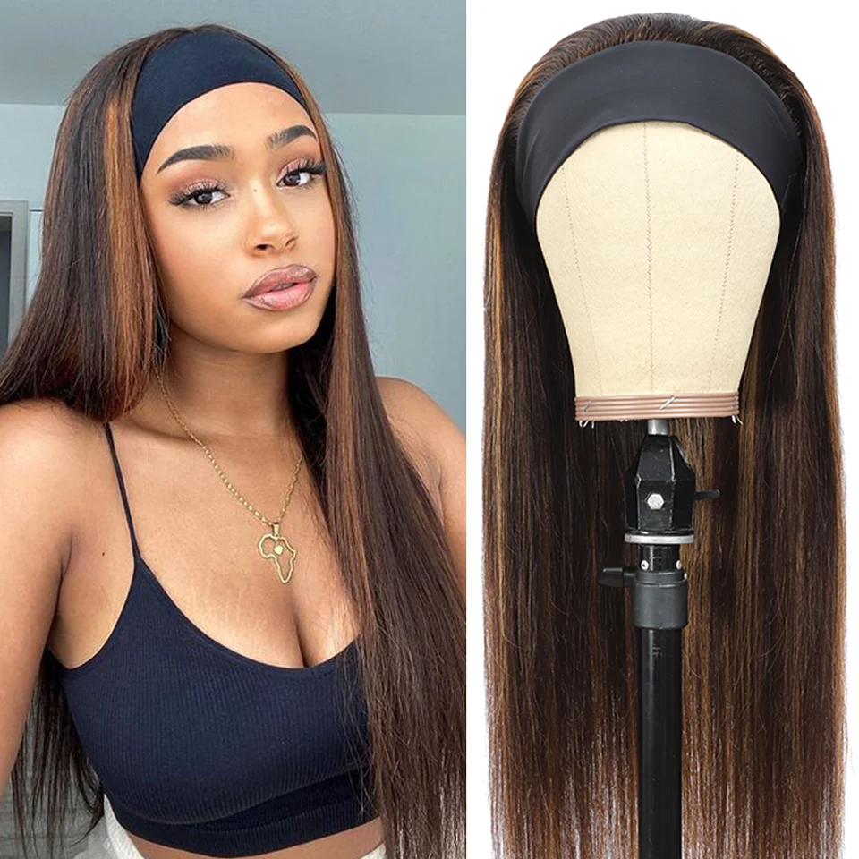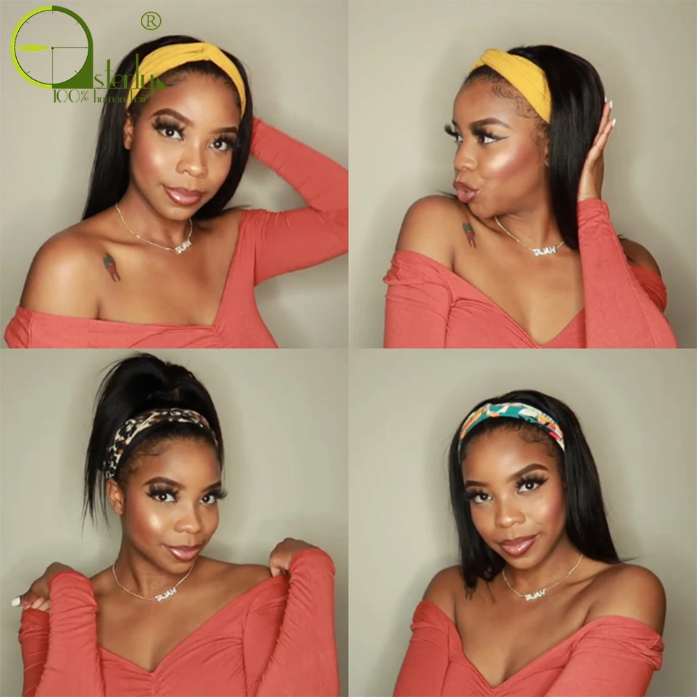 Sterly Gluless Выделите парик с головной повязкой человеческих волос парик человеческих волос с прямыми парики из натуральных волос для Для женщин Cheveux Humain
