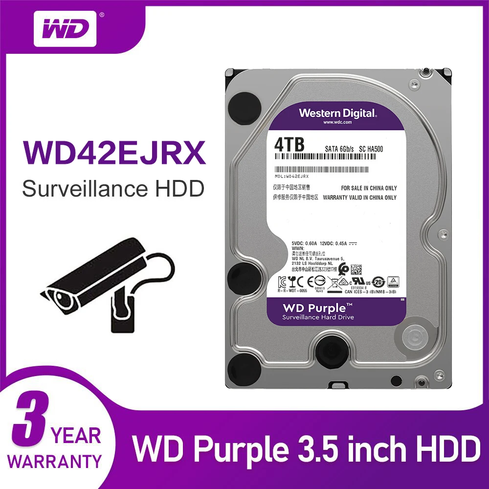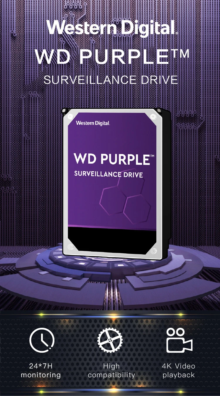 Western Digital Purple HDD для наблюдения 1 ТБ 2 ТБ 3 ТБ 4 ТБ 6 ТБ 8 ТБ SATA 6,0 ГБсек. 3,5 "жесткий диск для камеры видеонаблюдения AHD DVR IP NVR
