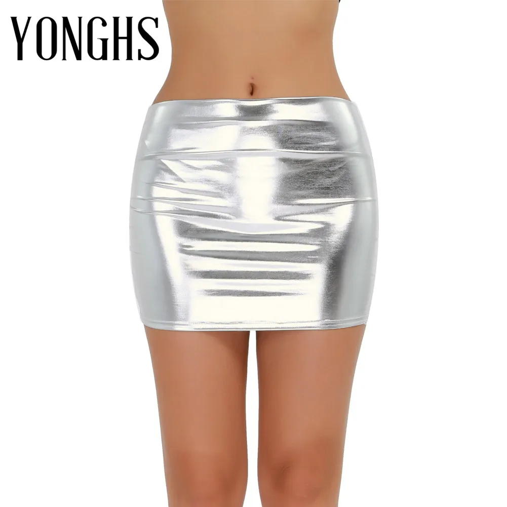 Женское блестящее Эротическое нижнее белье, мини-юбка, привлекательное нижнее белье из лакированной кожи для секса, глянцевые привлекательные юбки