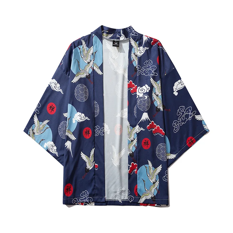 Кимоно мужское с принтом журавлей, хаори, юката, японский кардиган,...