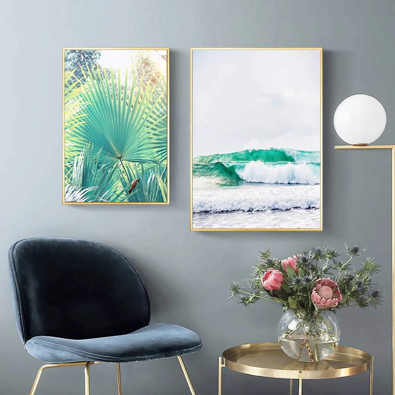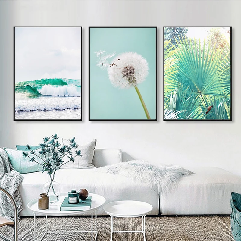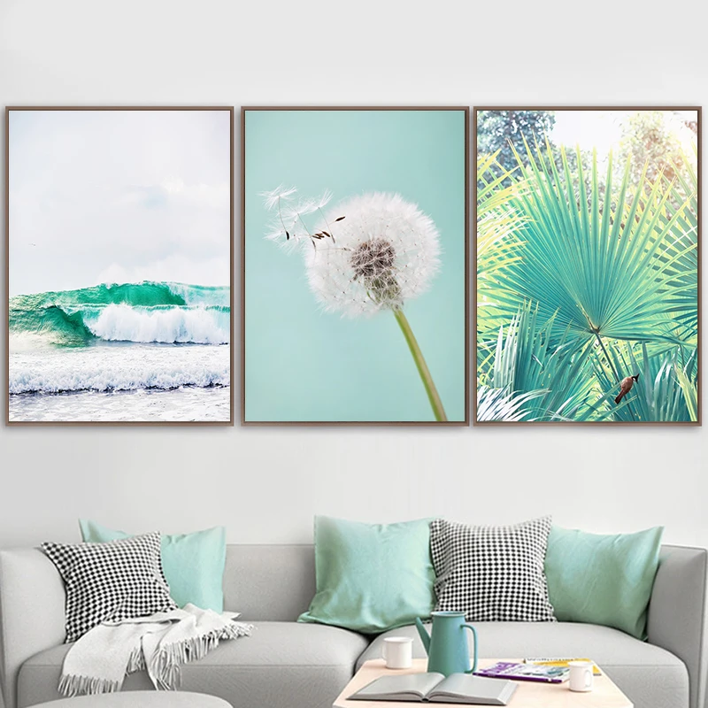 Голубое море HD настенная художественная Модульная картина плакат в скандинавском стиле зеленые растения Одуванчик Холст Картина Печать Ресторан украшение для дома