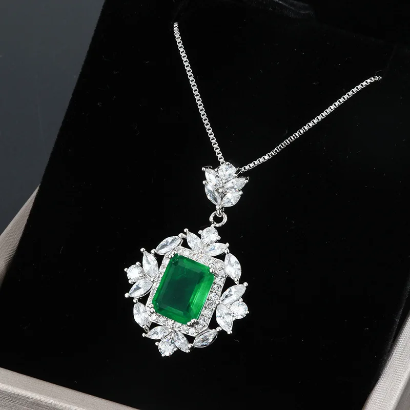 Набор женских ювелирных изделий из серебра 925 пробы, кольцо с подвеской и сокровищами изумрудного цвета