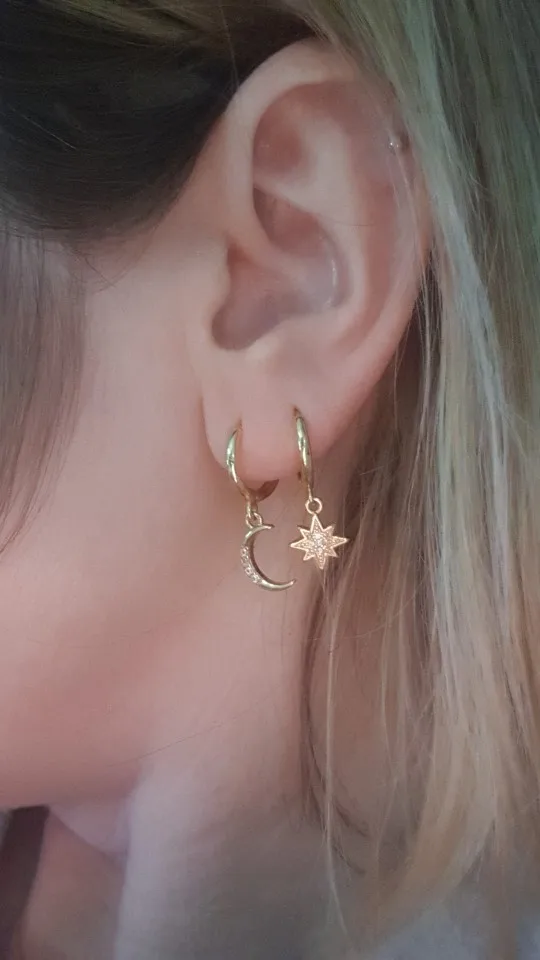 Женские серьги-кольца в стиле звезды и Луны