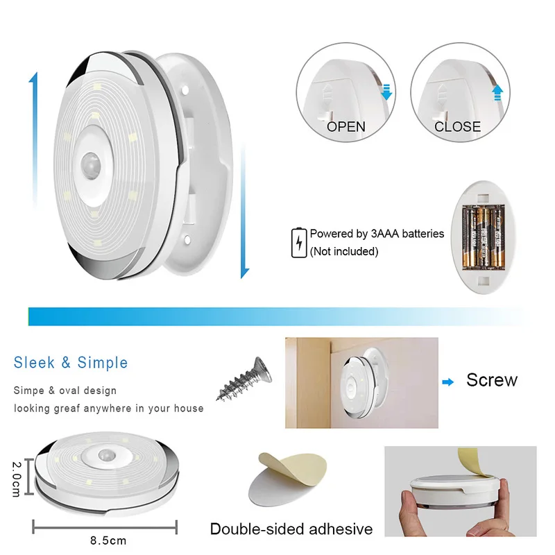 2. Питание от аккумулятора: питание от 3 батареек AAA на беспроводной светодиодный светильник (батарейки в комплект не входят). Это будет экономично и экологично при использовании перезаряжаемых батарей для поставки. Безопасен для ваших детей и вашей семьи.