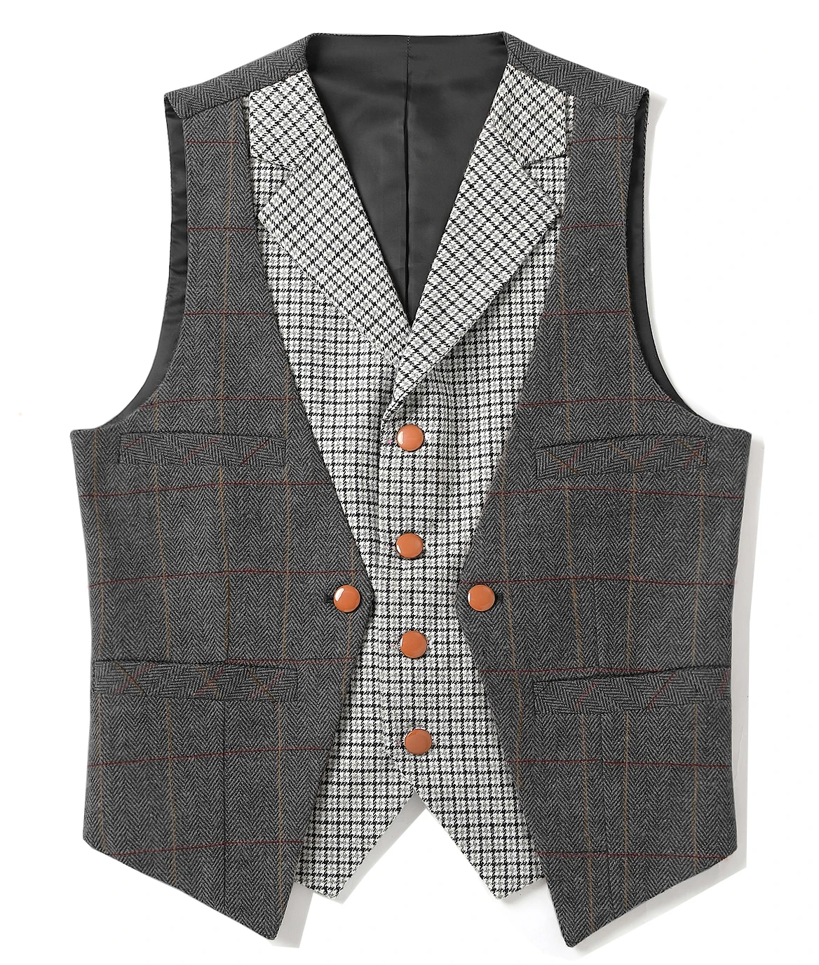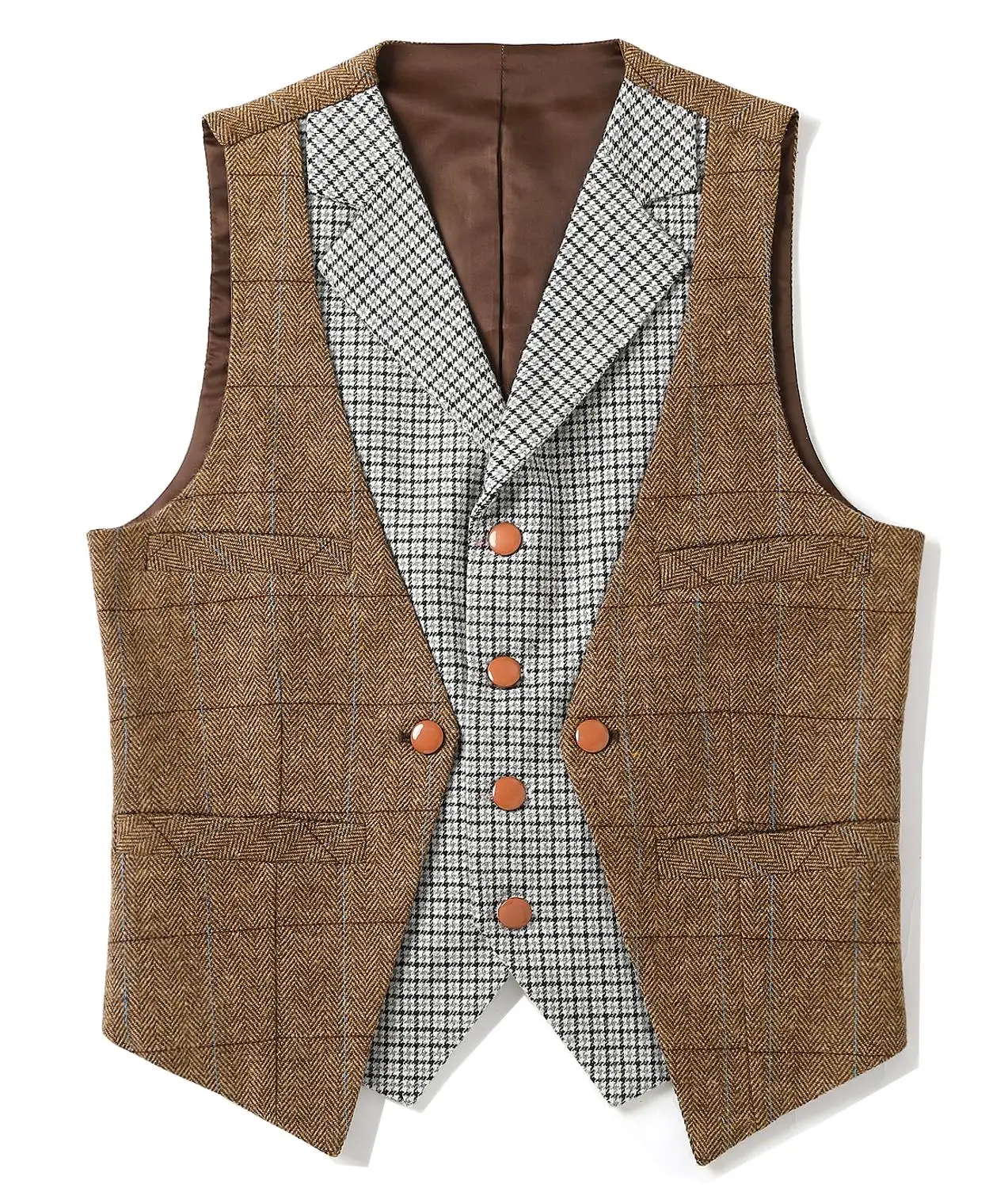 Коричневый мужской клетчатый шерстяной жилет, многослойный твидовый жилет в елочку, повседневный деловой мужской жилет для свадьбы