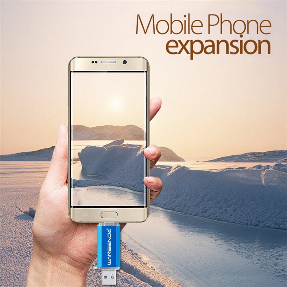 WANSENDA OTG Usb 3,0 USB-флеш-накопитель, 32 ГБ, 64 ГБ, 128 ГБ, 256...