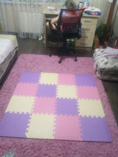 Нормальный коврик, немного помялся из-за упаковки, хотя упакован был очень хорошо! При открытии присутствовал запах, но за ночь выветрился и сейчас, вроде, нормально. Доставка быстрая, коврик достаточно большой, мы его разделили на два разных.