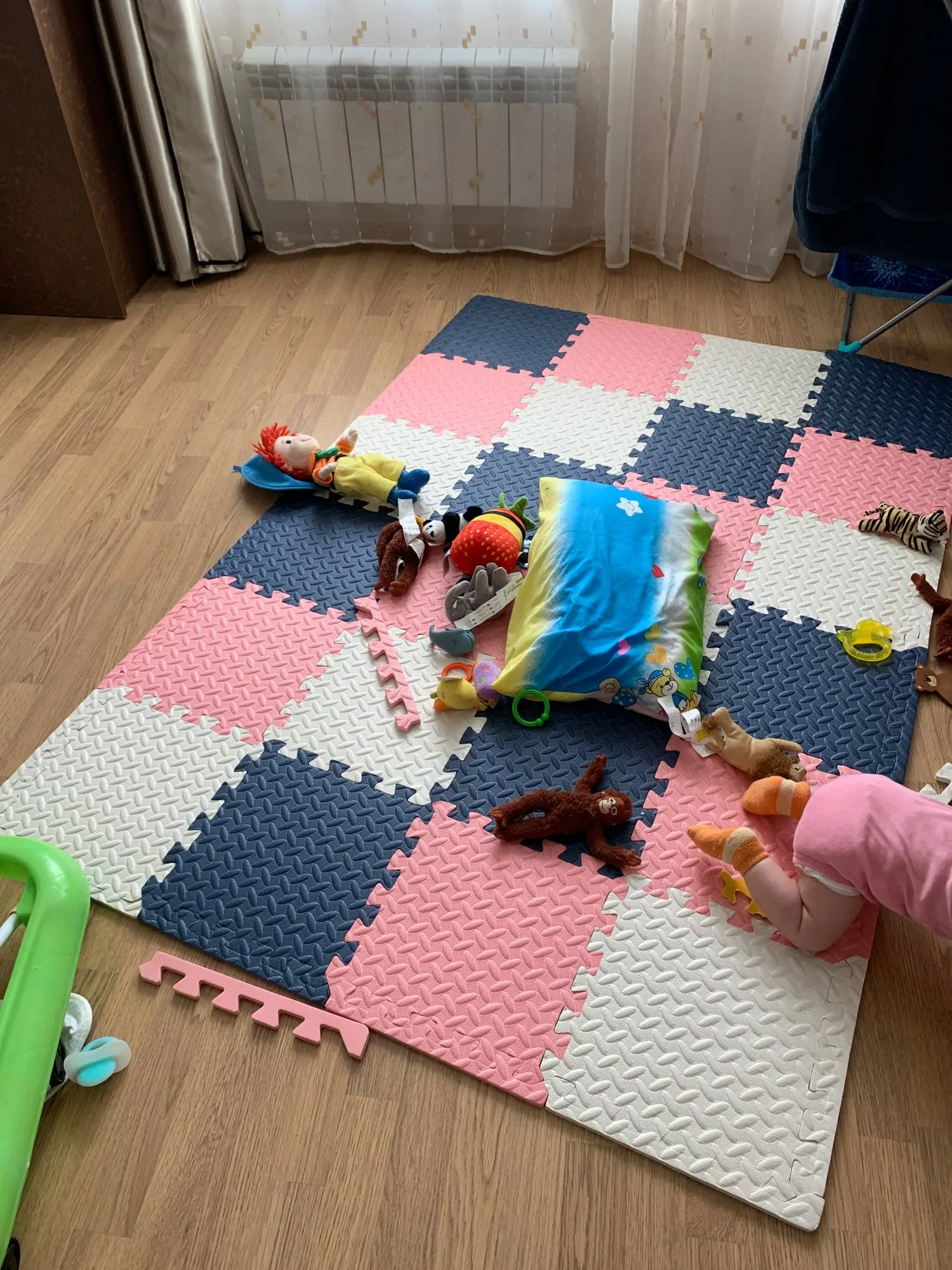 К сожалению очень сильный запах , невозможно пользоваться . проветривали несколько дней , но запах не уходит совсем . в квартире все равно через какое-то время начинает пахнуть , детям играть в комнате невозможно. отправим на дачу, может когда-нибудь выветрится. расстроена , потому что выбрала именно эти коврики из-за красивого цвета. цвет и правда хорош , размер у меня получился 32 см . заглушки даже лишние оказались. в общем красиво , но неупотребимо пока для детей