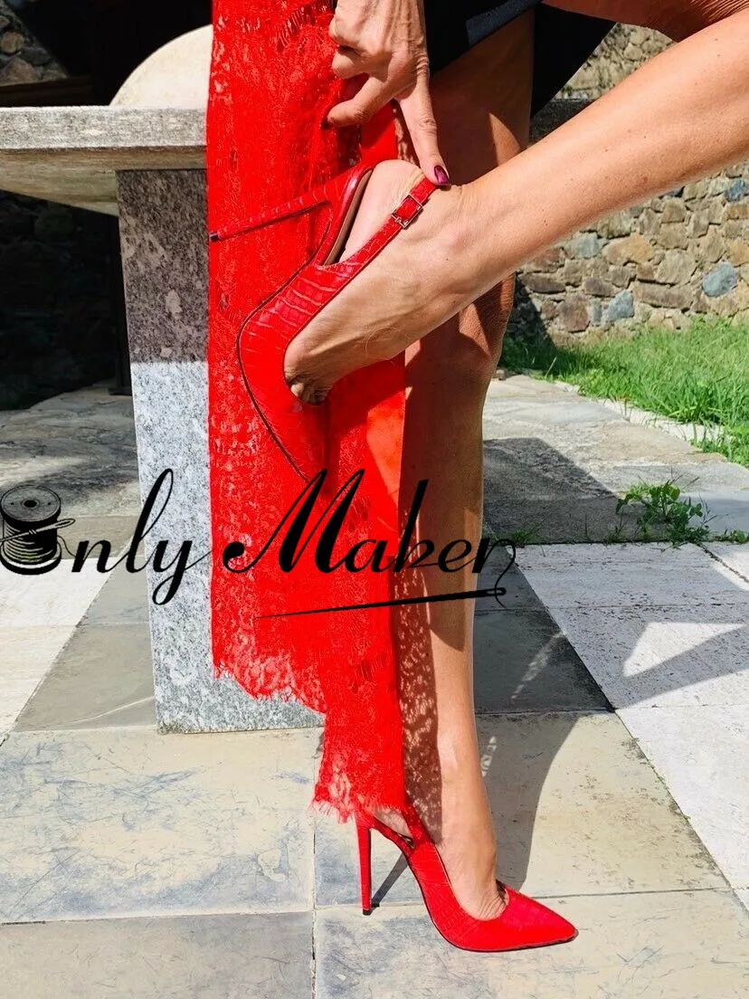 Onlymaker/женские пикантные туфли-лодочки с ремешком на пятке; Вечерние модельные туфли на высоком каблуке с острым носком и ремешком на щиколотке с животным принтом; Цвет Красный