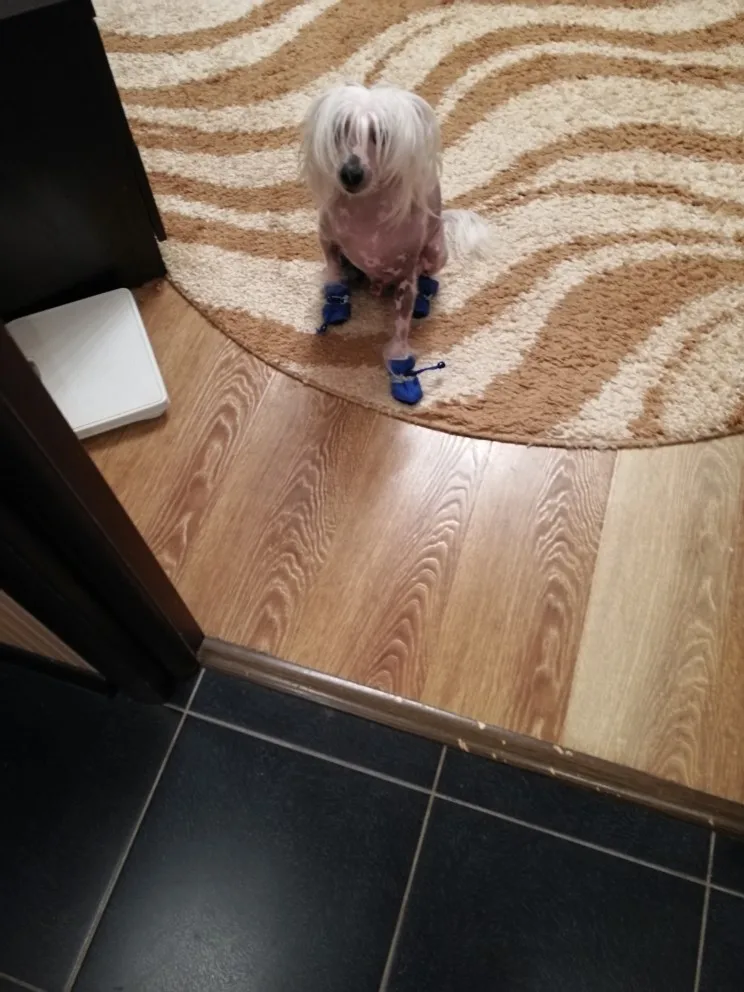 Продавец товар отправил сразу после оплаты. Доставка очень быстрая. Но не понимаю зачем эти тапочки собаке? Сами меховые, а подошва - просто ткань, без меха. Уж точно они не для тепла