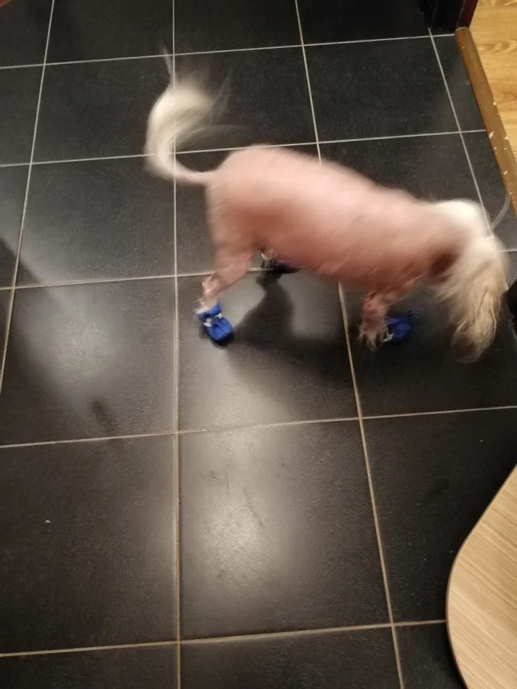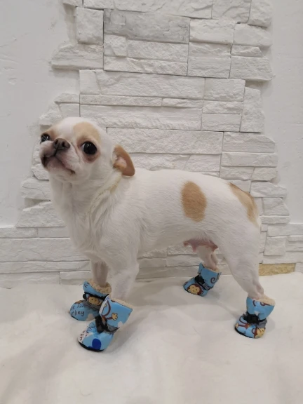 Суперские сапожки. Пёс, уже гуляет в них. Видно что лапки не замерзают. Заказывали для шпица померанского. У нас на Урале сильные морозы. Рекомендую.