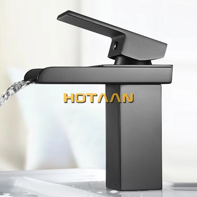 Смеситель для раковины, латунь, с черным покрытием, квадратный смеситель для раковины, для горячей и холодной воды, с одной ручкой, YT-5018-H