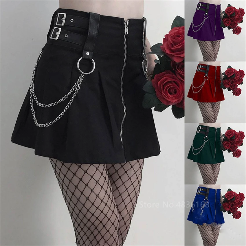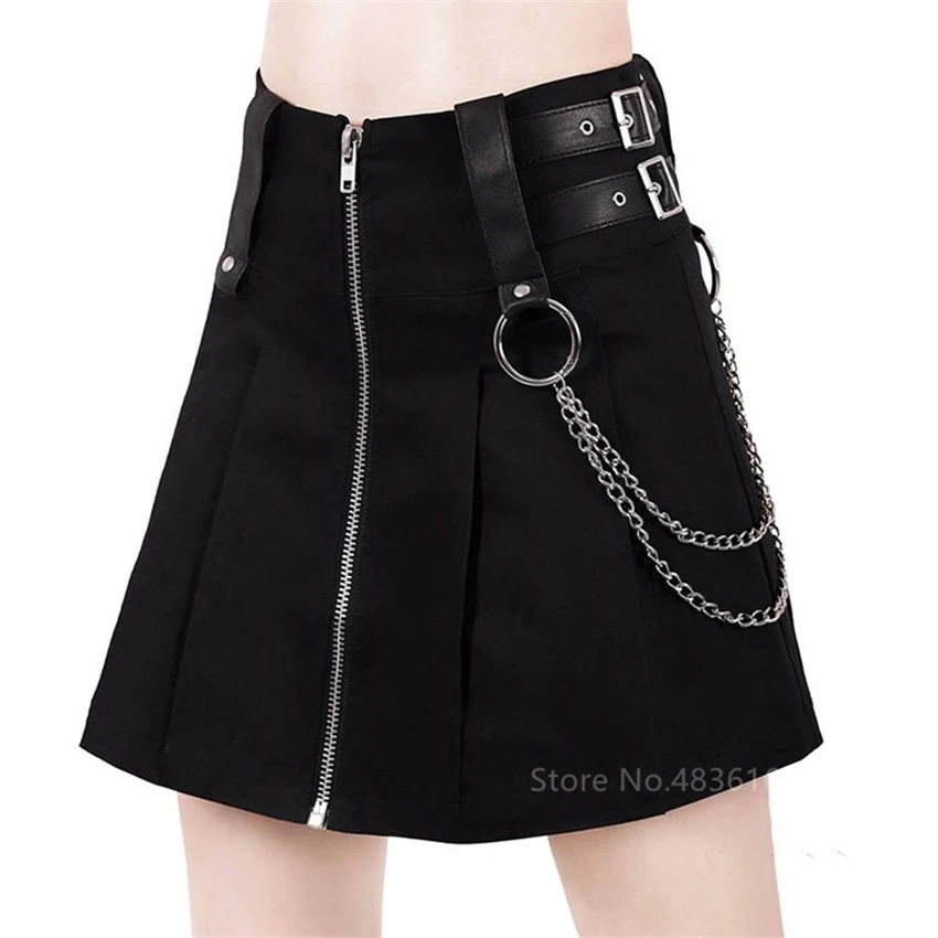 Женские готические плиссированные клетчатые юбки, сексуальные летние модные мини-юбки с завышенной талией и ремешком на молнии для ночного клуба