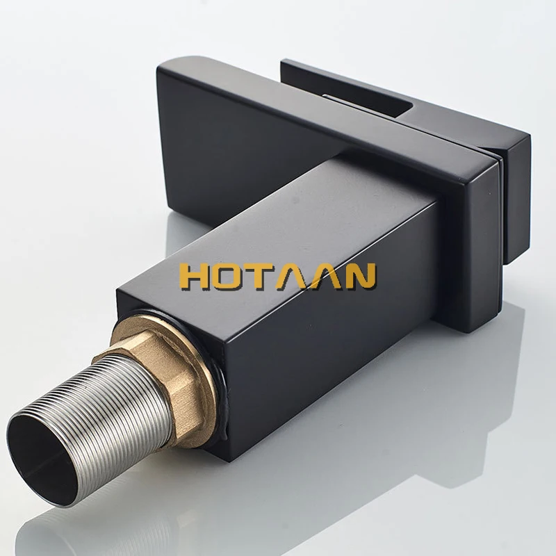 Смеситель для раковины, латунь, с черным покрытием, квадратный смеситель для раковины, для горячей и холодной воды, с одной ручкой, YT-5018-H