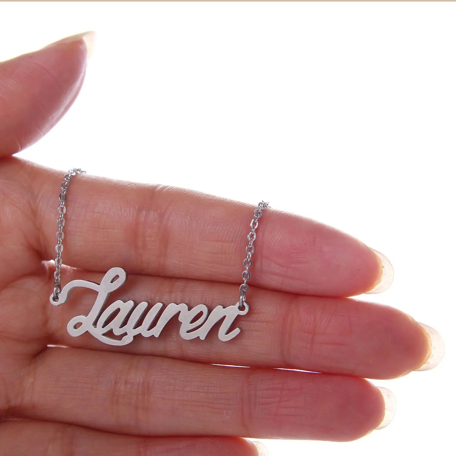 Заказное ожерелье из нержавеющей стали с именной табличкой, колье с английским именем, ювелирное ожерелье, персонализированные украшения, подарки 45 шрифтов