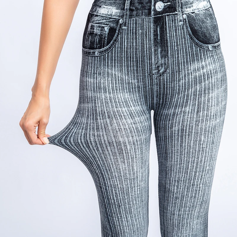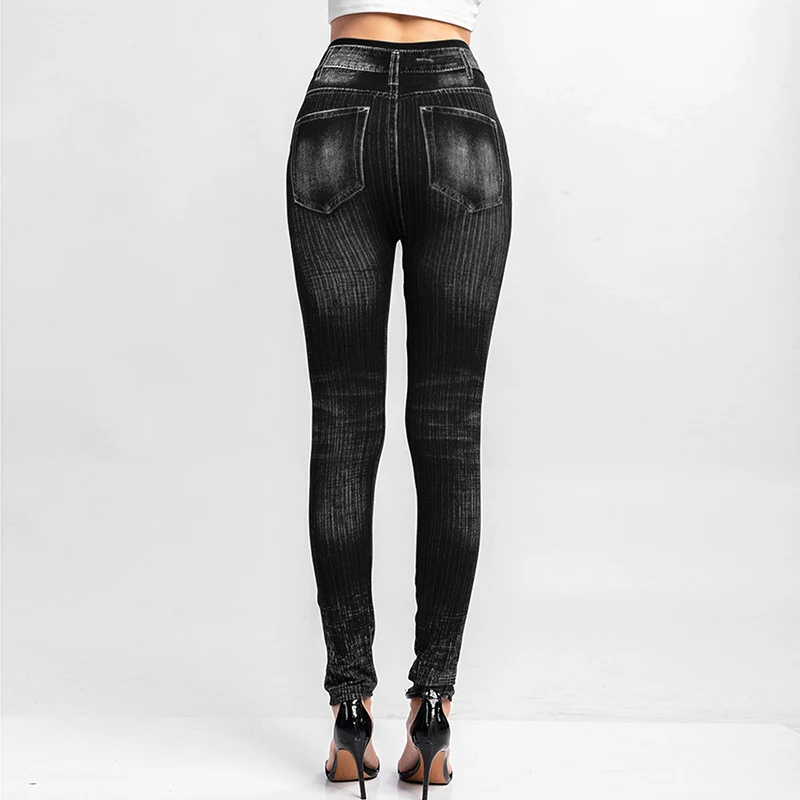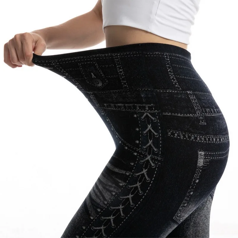 Женские облегающие брюки-карандаш, бесшовные леггинсы для тренировок и бега с высокой талией из искусственных джинсов