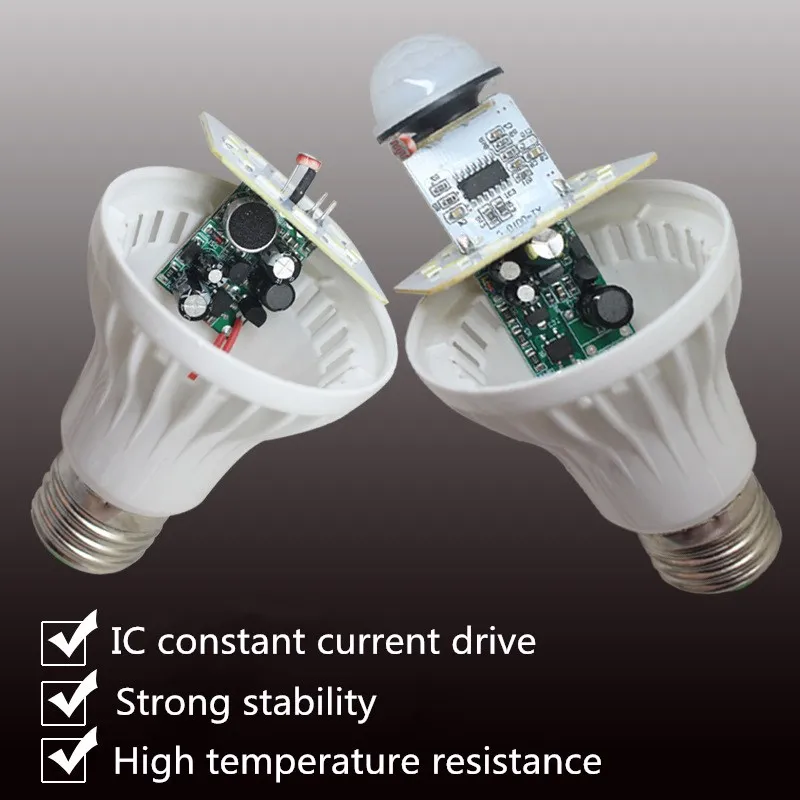 Лампа светодиодная, 3 Вт, 5 Вт, 7 Вт, 9 Вт, E27, с инфракрасным датчиком