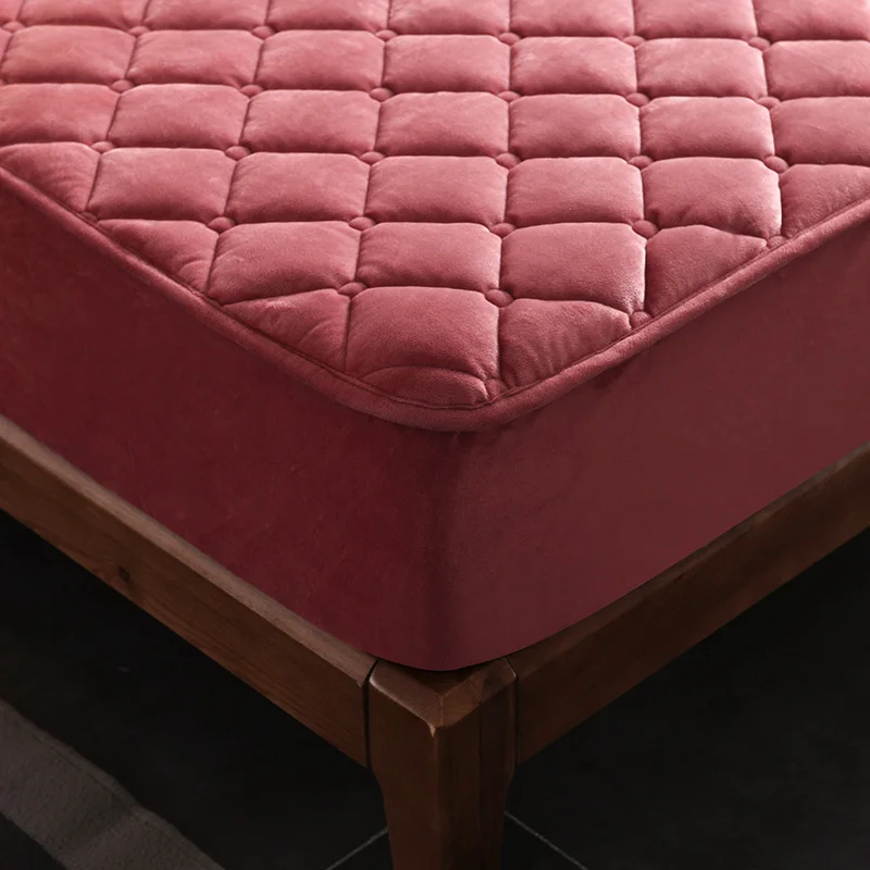 Плотный плюшевый стеганый чехол на матрас 160*200 см, теплый мягкий бархатный стеганый чехол с кристаллами для двуспальной кровати, простыня, однотонный чехол на матрас