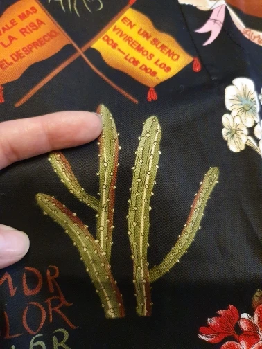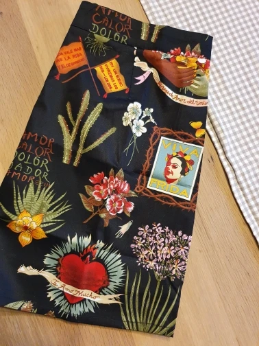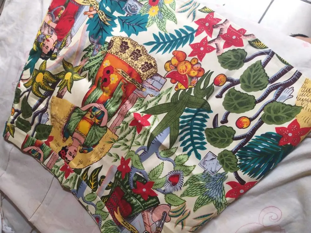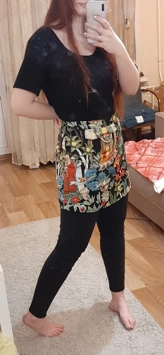 Очень красивая, качественная ткань и принт-чудо, размер, который я выбрал, соответствует 42 испанскому. Это того стоит. Также цена очень экономичная. И товар очень быстрый с двумя подарочными хвостиками.
