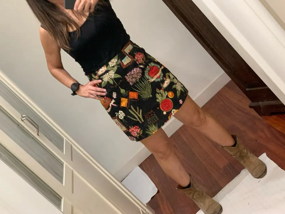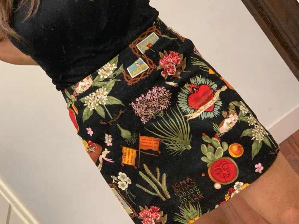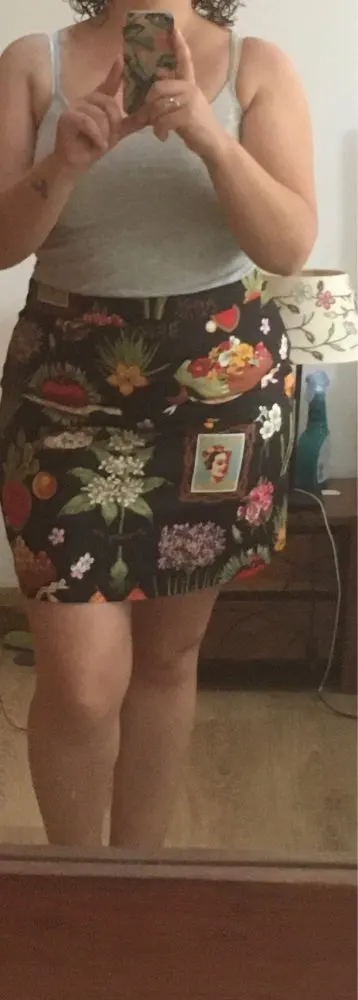 Юбка очень красивая, что-то эластичное и рисунки такие как на фото. Мне не нравятся мини-юбки, поэтому я заказал размер XXL, поэтому талия остается выше бедер и поэтому длиннее. Мои измерения: 80 талии и 110 бедер.