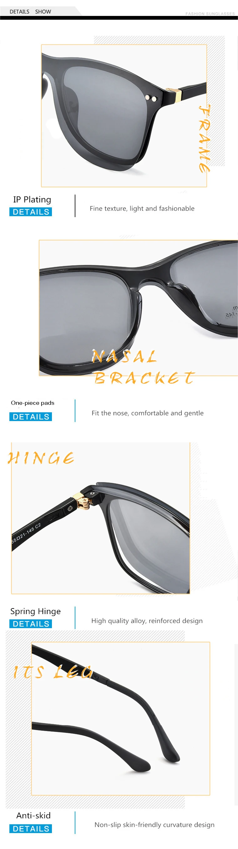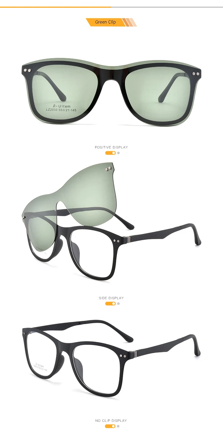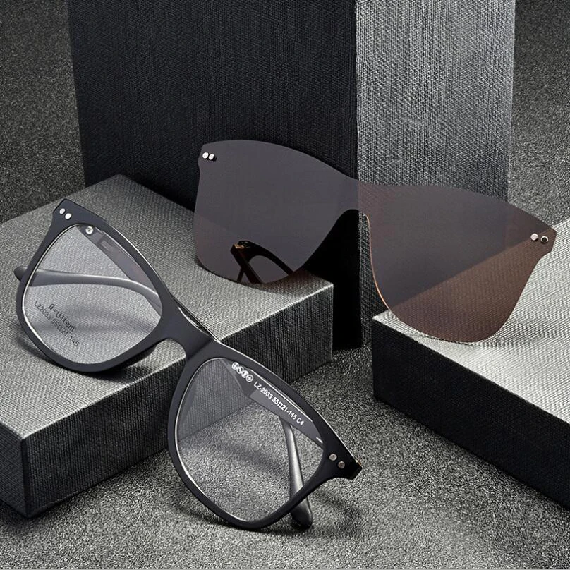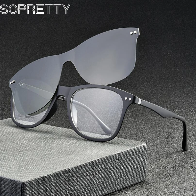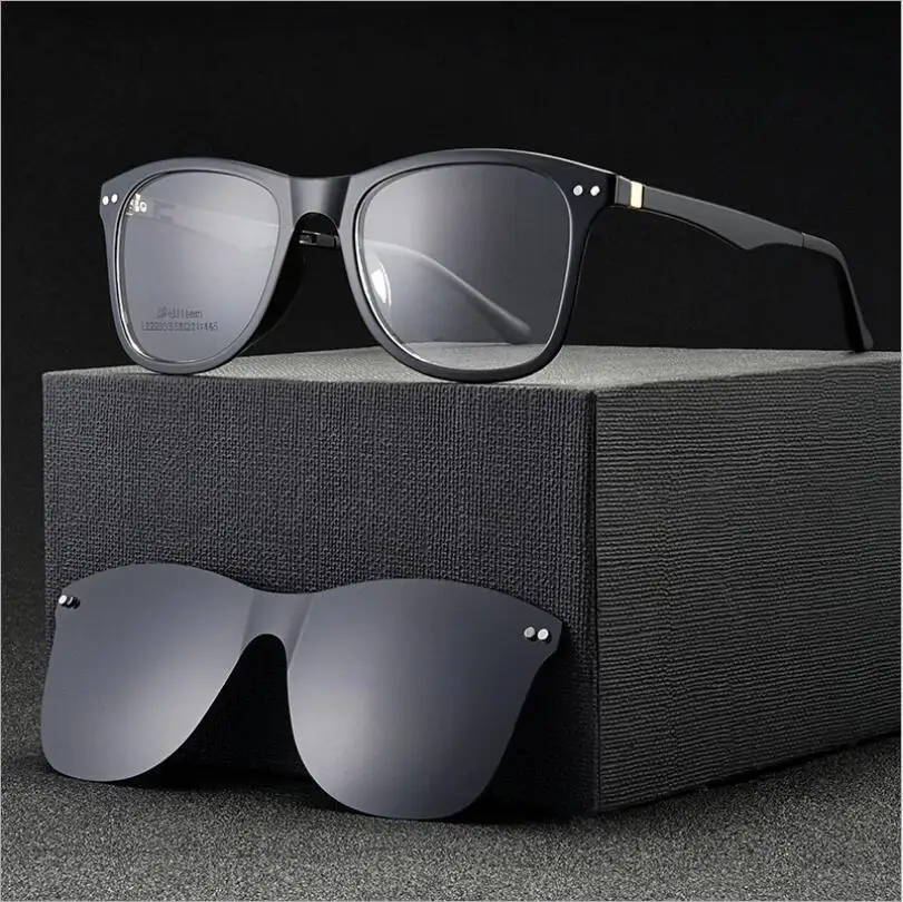 Квадратные мужские и женские очки TR90 в черной оправе с TAC поляризованные солнцезащитные очки магнитные зажимы для очков по рецепту при близорукости F2033