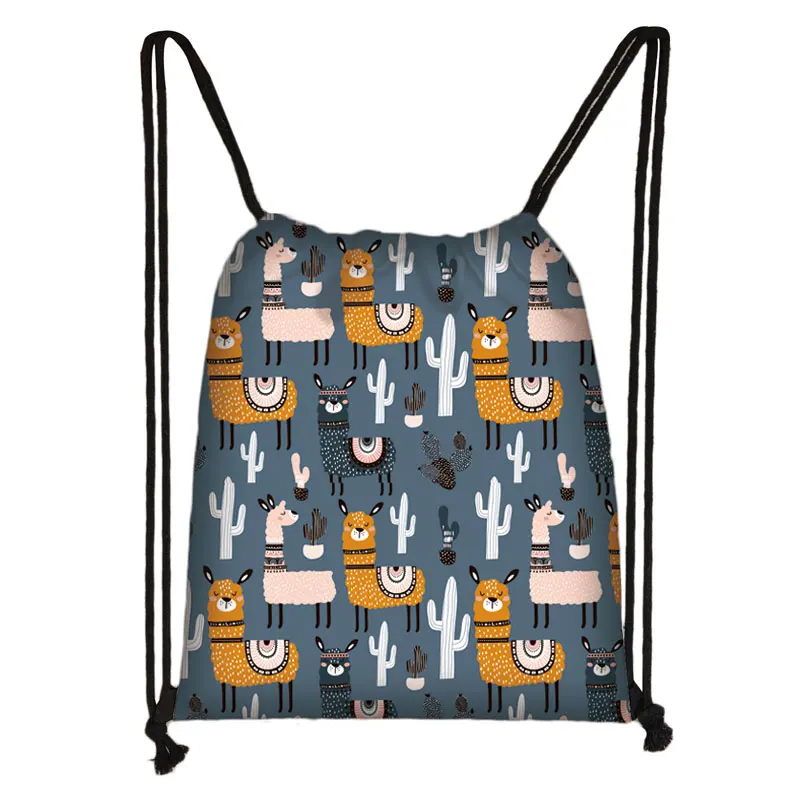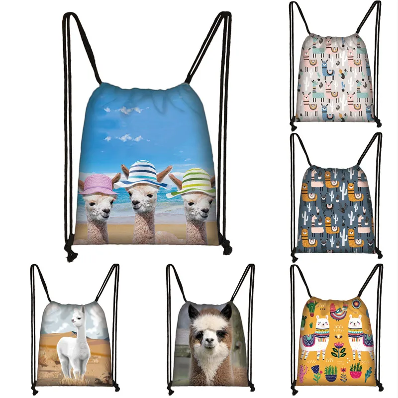 Сумка на шнурке с милым принтом животного альпака, женская сумка для хранения, модные сумки для покупок для мальчиков и девочек, сумка для книг, Детская сумка для конфет