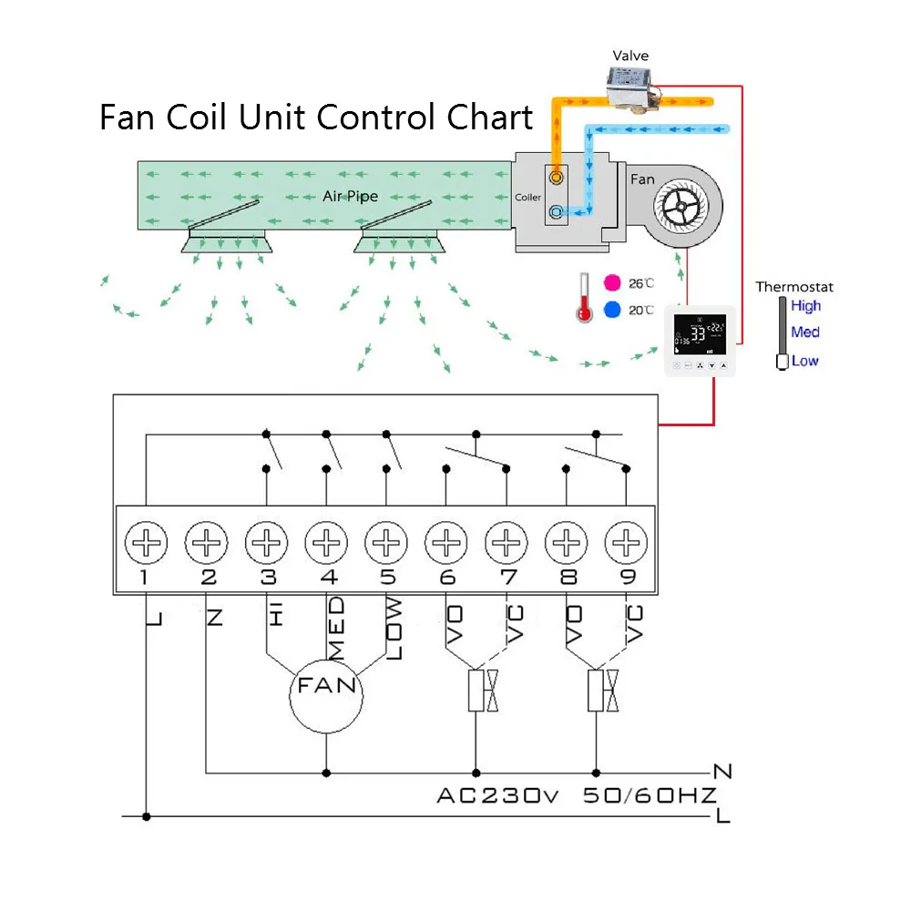 Термостат переменного тока 230 В 5A с Wi-Fi и пультом дистанционного управления для центрального кондиционера и катушки вентилятора, умный регулятор регулятора температуры