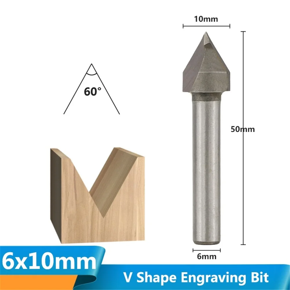 1 шт. 6x10 мм 60 градусов V Форма коническая Концевая фреза для деревообработки 3d фреза V паз фреза