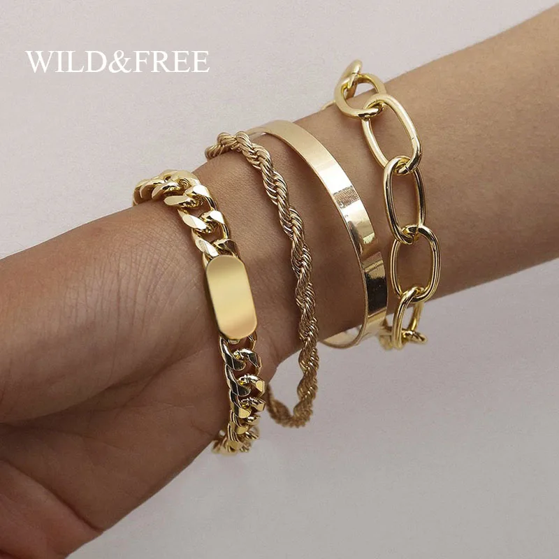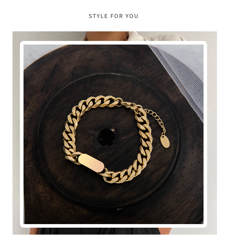 Женский браслет-цепочка из нержавеющей стали, из кубинской панцирной цепи
