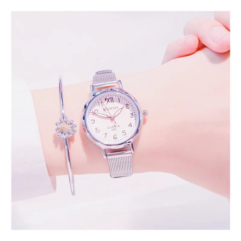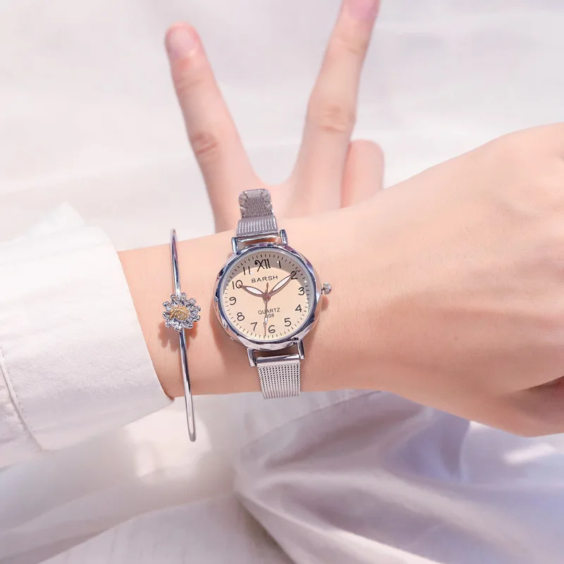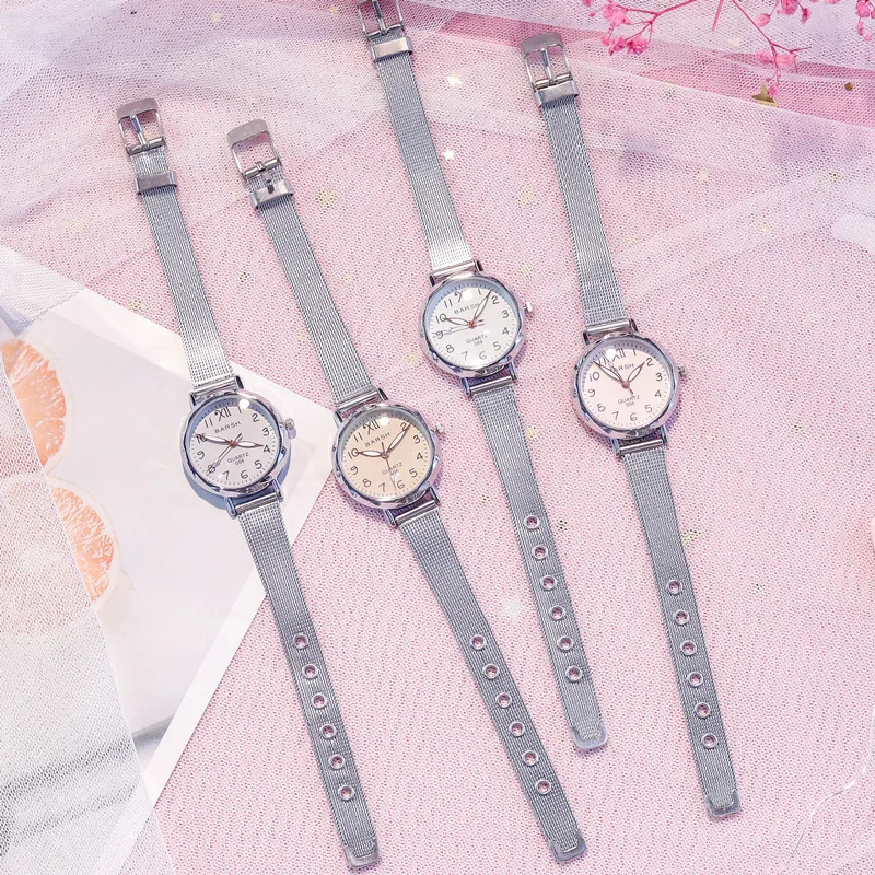 Женские модные часы с серебряным сетчатым ремешком, простые женские наручные часы из нержавеющей стали, повседневные женские часы с цифрами и циферблатом Zegarek Damski