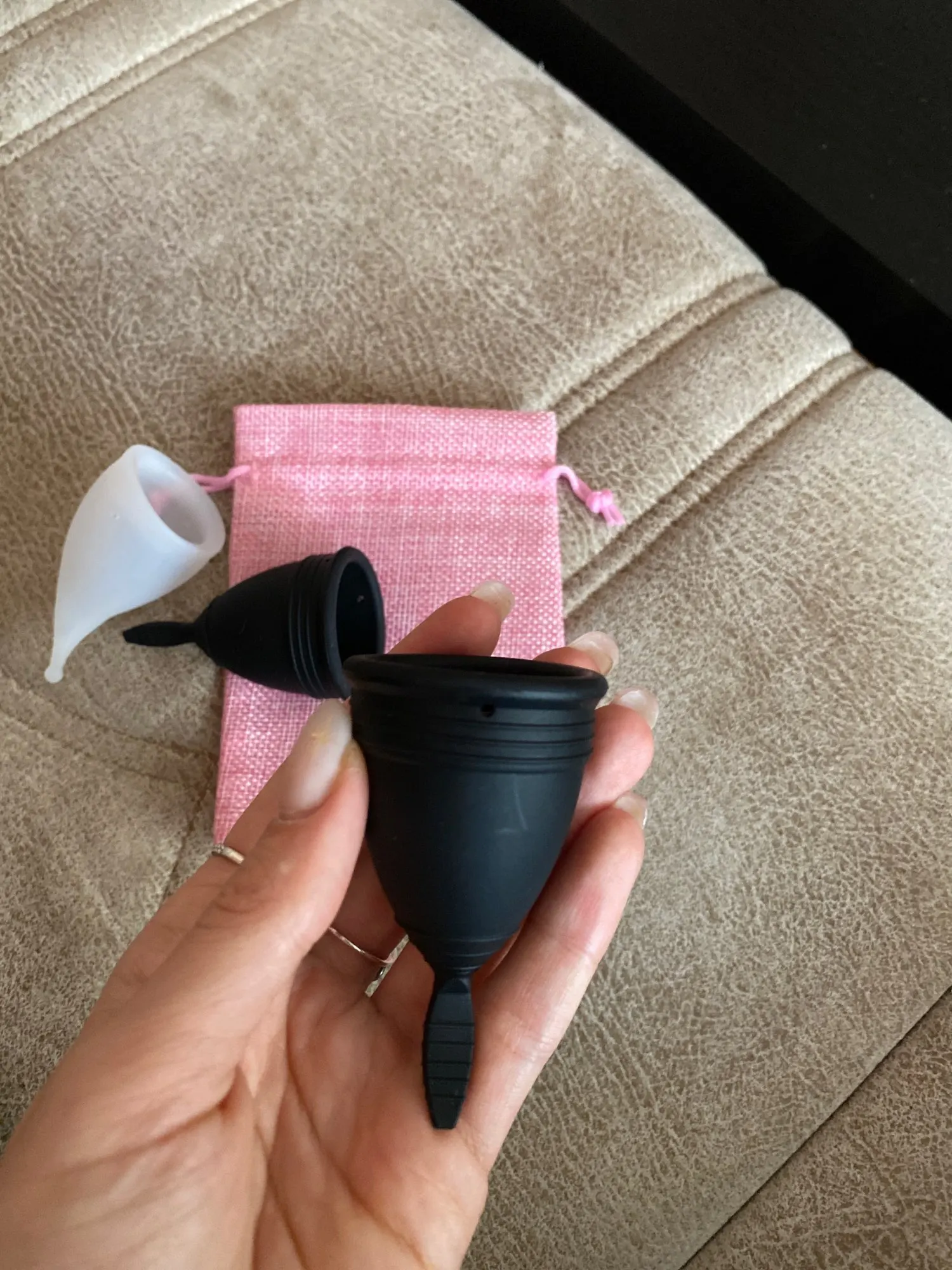 Отличные чаши! Если сравнивать с Lila Cup, то это вообще супер товар! Во-первых, стоимость. Одна лила в десять раз дороже, чем эти ДВЕ. Во-вторых, Лила очень жесткая, а эти мягкие, но функцию свою выполняют на 100%. В-третьих, упаковка. Лила в прозрачном пакете приходят. Эти две чаши в милом розовом мешочке. В-четвёртых, качество материала! Лила со временем темнеет, как старый силиконовый чехол для телефона, и пользоваться ей уже нет желания. Эти чаши не потемнеют. Они хорошо переносят кипячение или мытьё с мылом для интимной гигиены. Для тех, кто хотел попробовать менструальную чашу, но всегда пугался стоимости- идеальный вариант. Как и с любой другой чашей придётся наловчиться, чтобы чаша принимала правильное положение, конечно. Но эти чаши выдержали 10 часов сна без единой протечки. И пришли за пару недель. Супер!