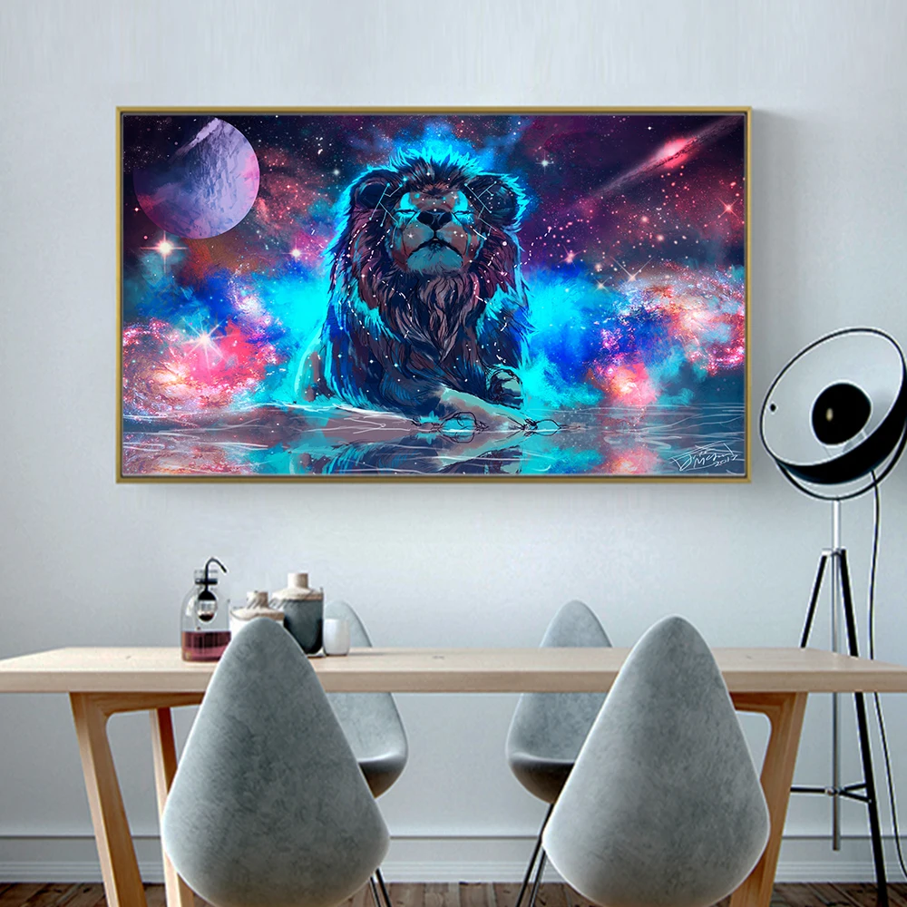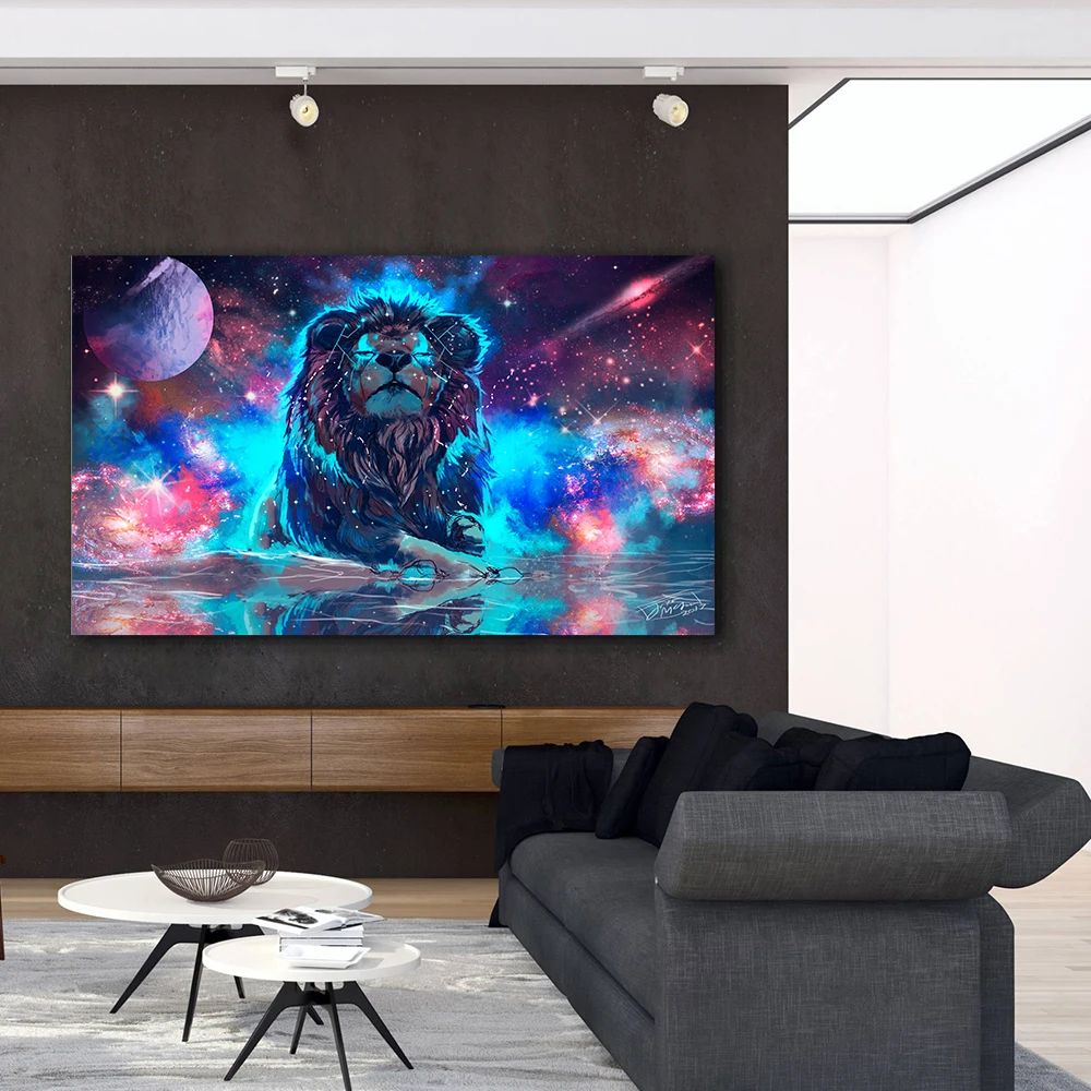 Аахх большой Размеры Цветной планета светящиеся Лев, рисунок на холсте Современная изображением искусства стены искусства плакат для Гостиная