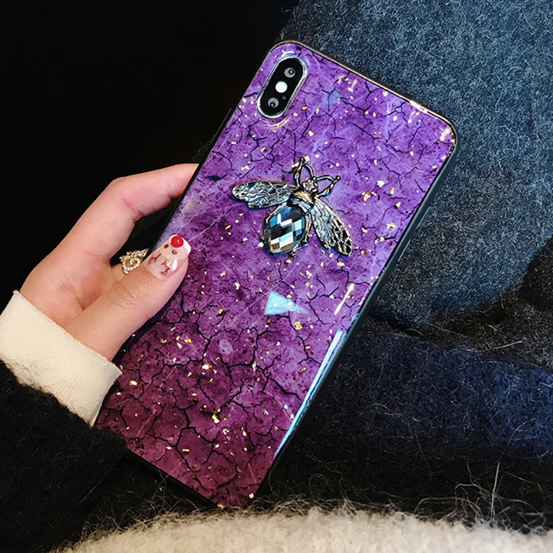 Блестящий Мягкий чехол из золотой фольги с мраморным 3D Пчелкой для...