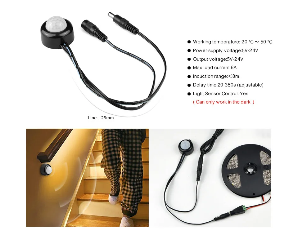 Высокочувствительный светильник с переключателем от PIR-датчика движения, автоматический переключатель от 12 до 24 В постоянного тока для светодиодных лент