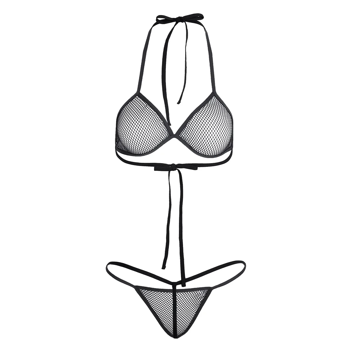 Женский прозрачный купальник-бикини, бюстгальтер с стрингами, Трусы-стринги, комплект для плавания, нижнее белье, ажурное бикини, купальный костюм