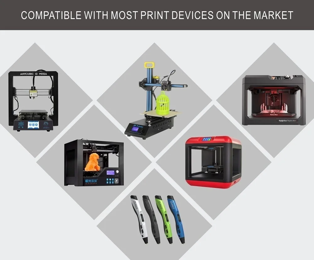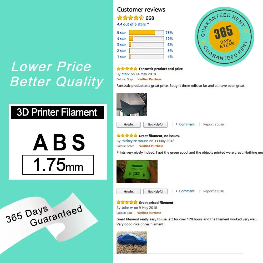 ABS нить отличная ударная прочность, стойкость к истиранию, химическая стойкость и крашение. Легко перемещать поддерживающий материал. Совместимые принтеры должны иметь нагревательное устройство, могут печатать модели имеют строгие требования к прочности и необходимости процесса, такие как: окрашивание, полировка, Гальваника и т. Д. Хорошо подходит для печати мелких деталей и т. Д. 100% без Пузырькового 3d материала принтера.